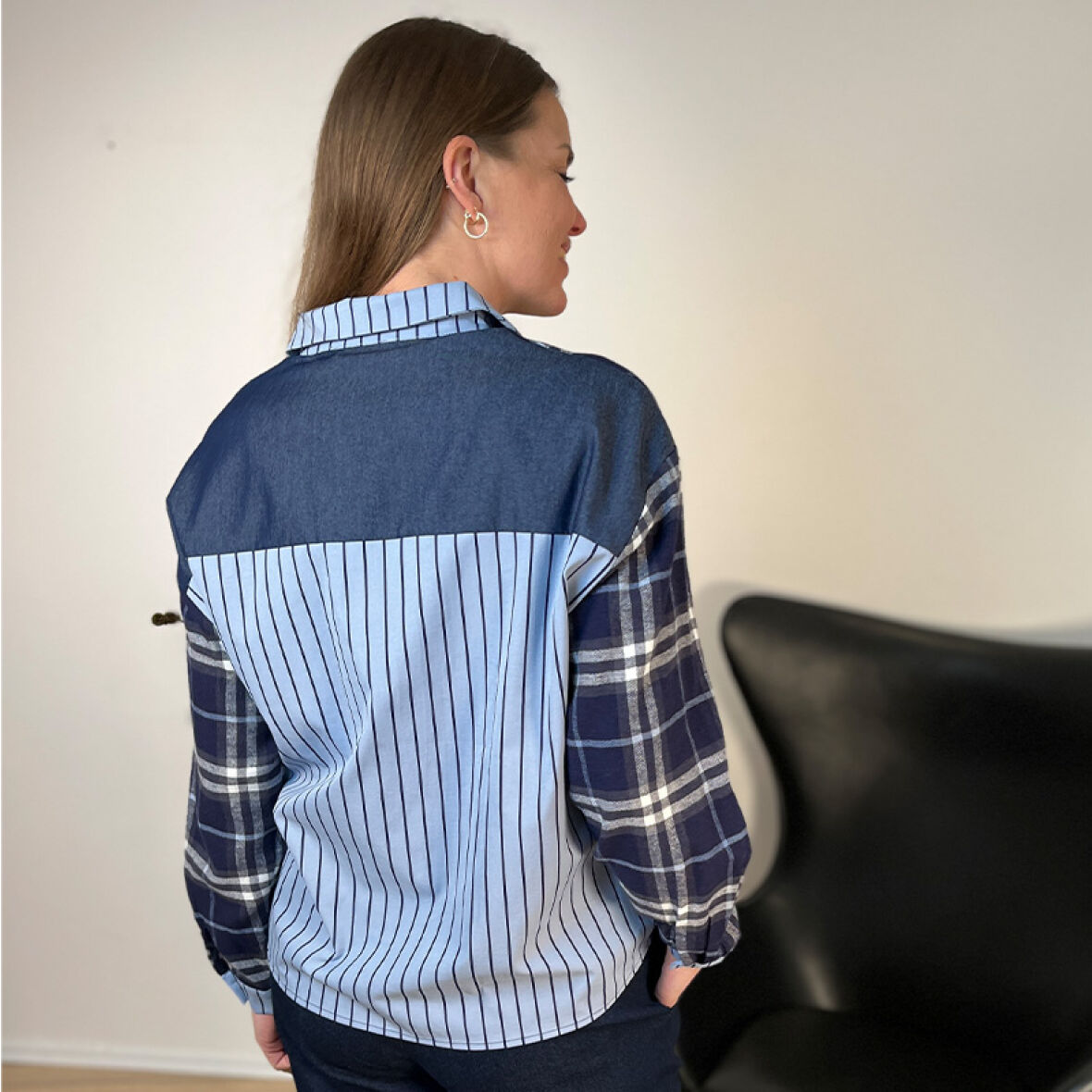 Smuk stribet skjorte fra Continue. Skjorten har et fint blå-ternet mønster og brystlomme.