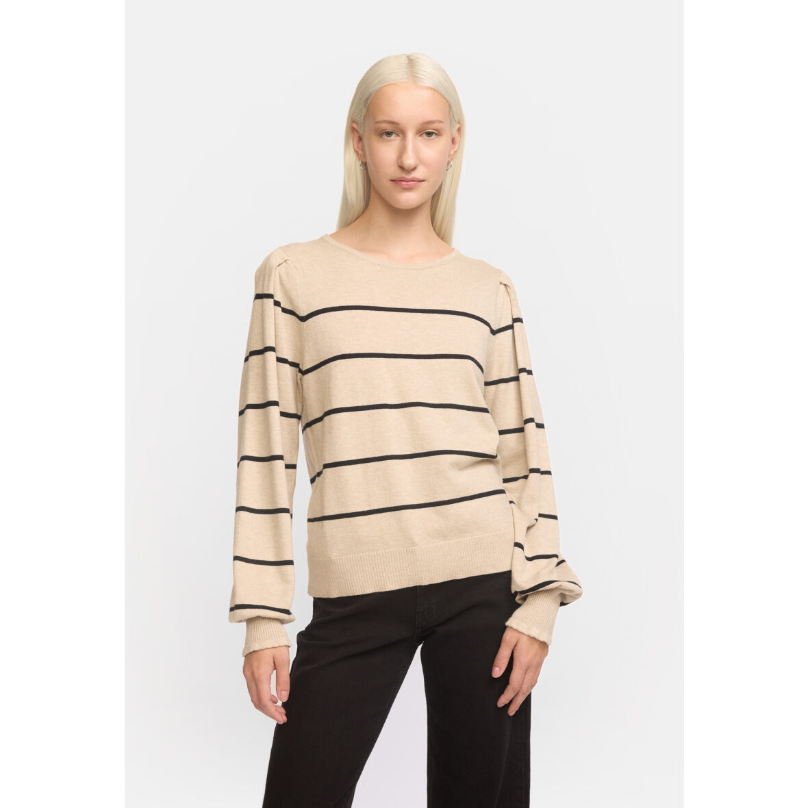 Denne klassiske strik er nu tilgængelig i striber og nye farver. Den er ideel til enhver lejlighed, hvor du ønsker at holde varmen uden at gå på kompromis med stilen. Det enkle og feminine design giver et sofistikeret udtryk, som gør strikken let at style til både hverdag og fest.