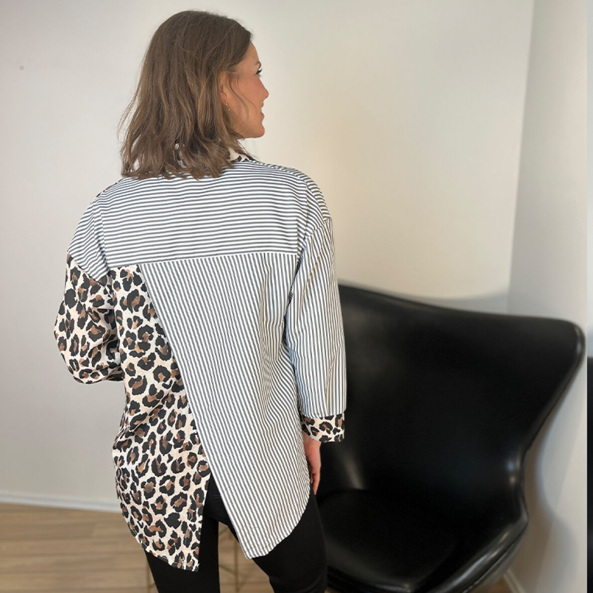 Gennem knappet skjorte med leopard print mixed med leopard print.