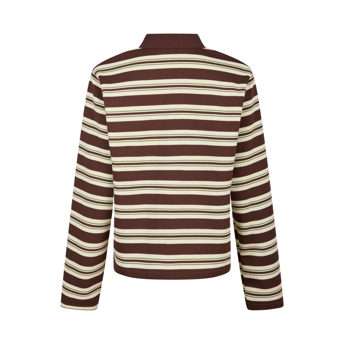Bluse med lille krav i polo-look. Pasformen er løs, og kvaliteten er blød med fine striber, hvilket giver et elegant og komfortabelt udtryk.