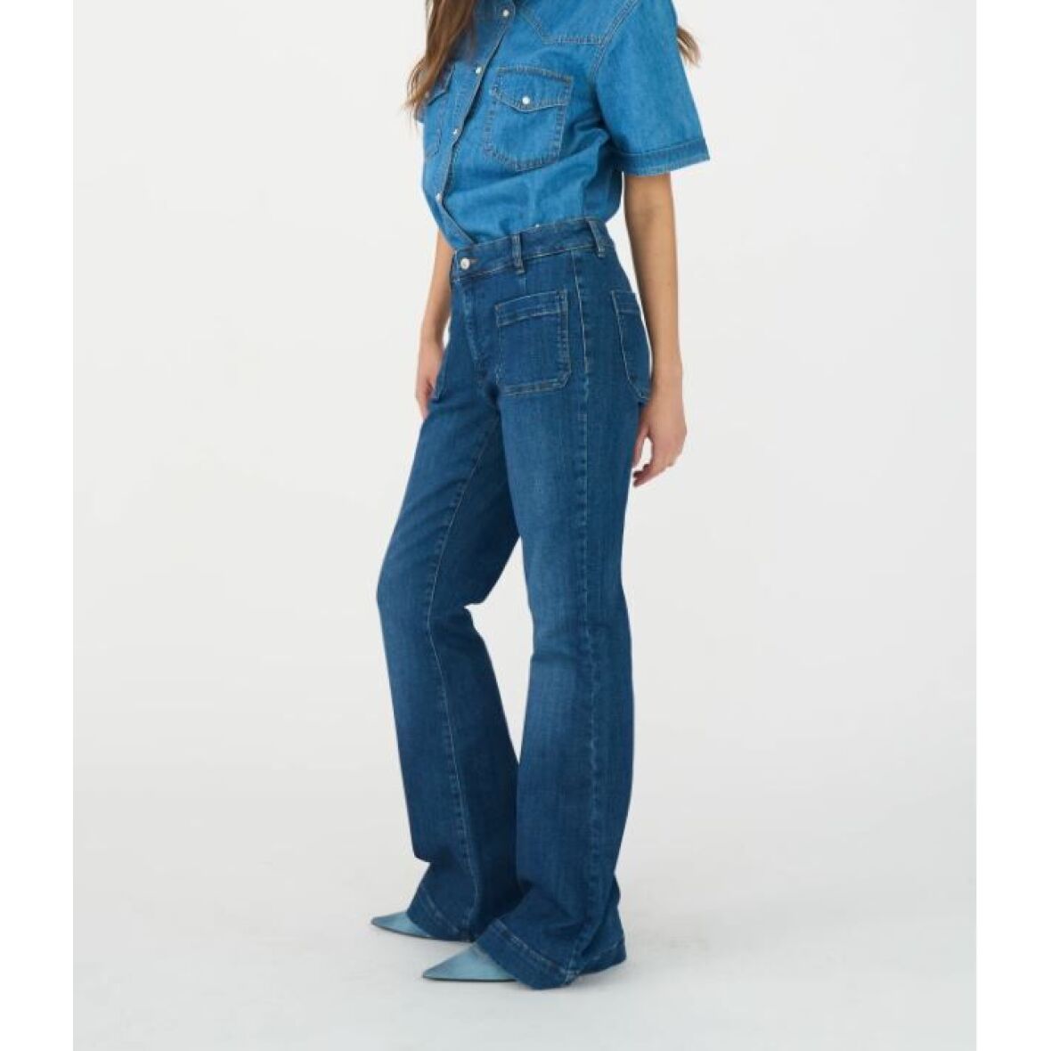 De karakteristiske brede bukseben og de elegante forlommer med patch-design tilfører et unikt præg, der gør disse jeans både alsidige og modige. Perfekte til at sætte et fashionabelt statement, uanset om du styler dem med en afslappet top eller en bluse.