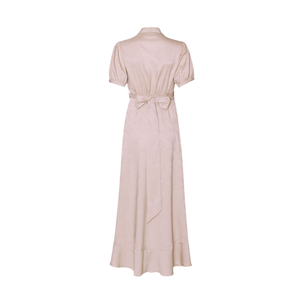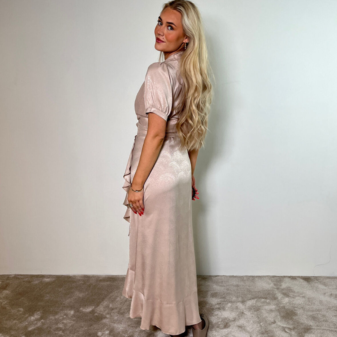 Den flotteste slå-om kjole fra Karmamia med pufærmer og bindebånd i taljen.