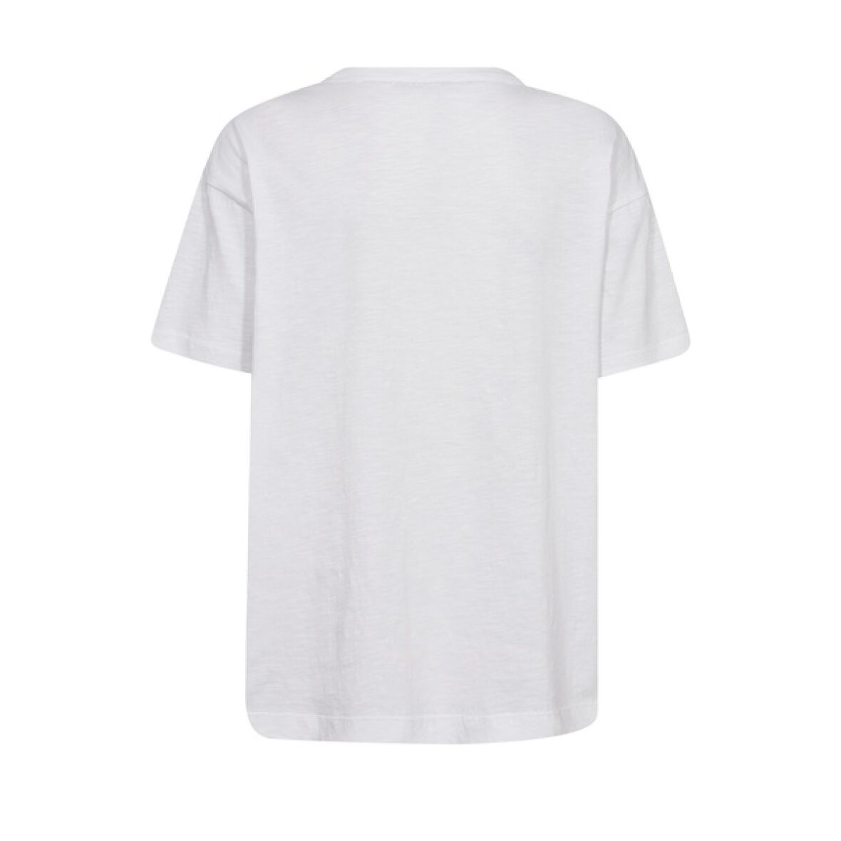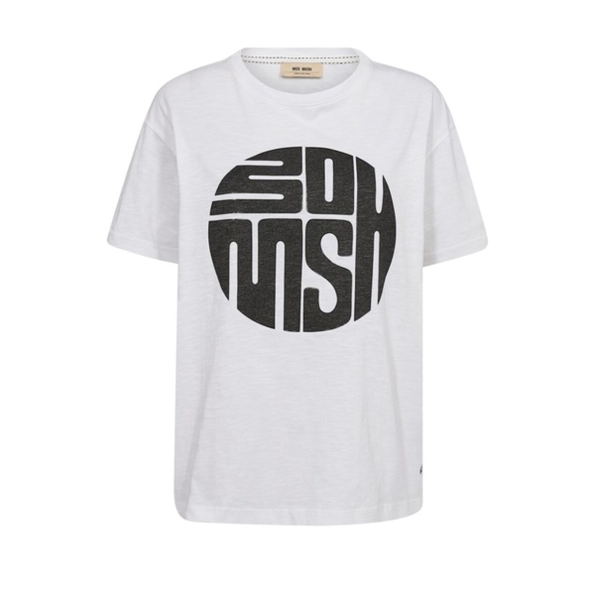 Giv din garderobe et strejf af vintage med denne retro-inspirerede MOS MOSH T-shirt. Den afslappede pasform og bomuldsmaterialet med grov struktur skaber et cool og tidløst udtryk. Det flotte tekstmotiv foran tilføjer ekstra kant, og T-shirten styles perfekt med højtaljede jeans og en løstsiddende blazer for et stilfuldt look.