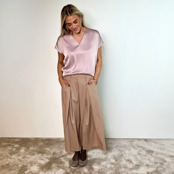 Denne elegante bluse fra Karmamia er et must-have til enhver stilbevidst garderobe. Med sin sofistikerede V-udskæring fremhæves din hals og giver blusen et feminint touch. Den lette, luftige kvalitet gør den perfekt til både festlige og mere afslappede anledninger. Den tidløse pasform og det smukke design gør den til en alsidig favorit, som kan styles med både nederdele, bukser og blazere.