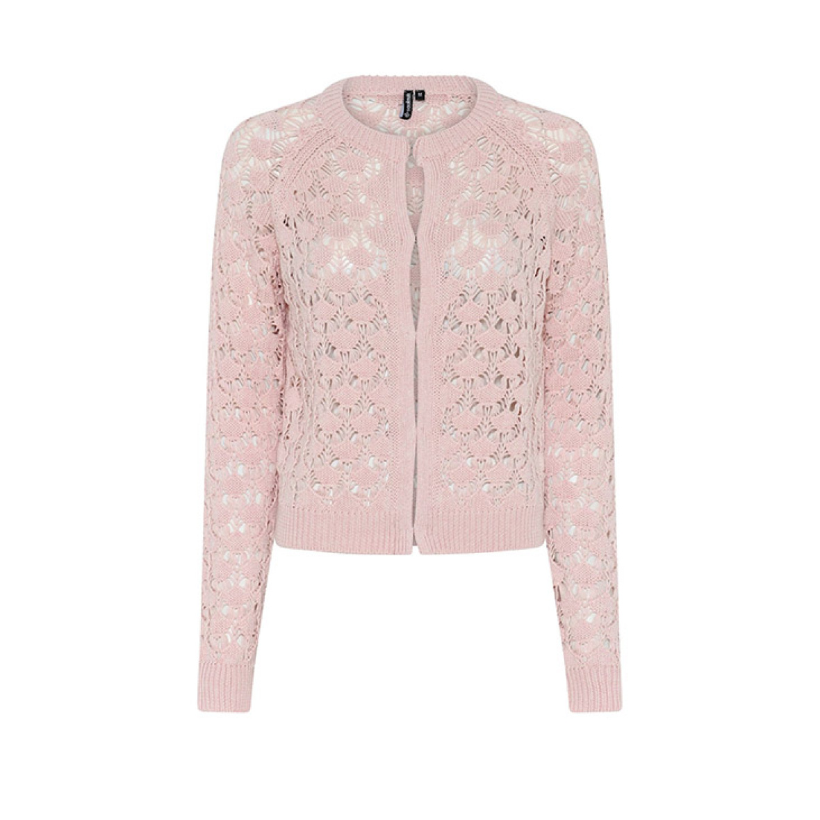 Denne flotte og farverige strikkede cardigan fra Soulmate er designet i et feminint rosa design, vævet i et fint hullet mønster. Cardiganen lukkes med skjulte hægter langs fronten, og den kan bæres både lukket og åbentstående, alt efter dit look. Med rund hals og lange ærmer er den både stilfuld og komfortabel. Lavet i en skøn 100% bomuldskvalitet, der er dejlig blød at have på, og giver en let og luftig fornemmelse.