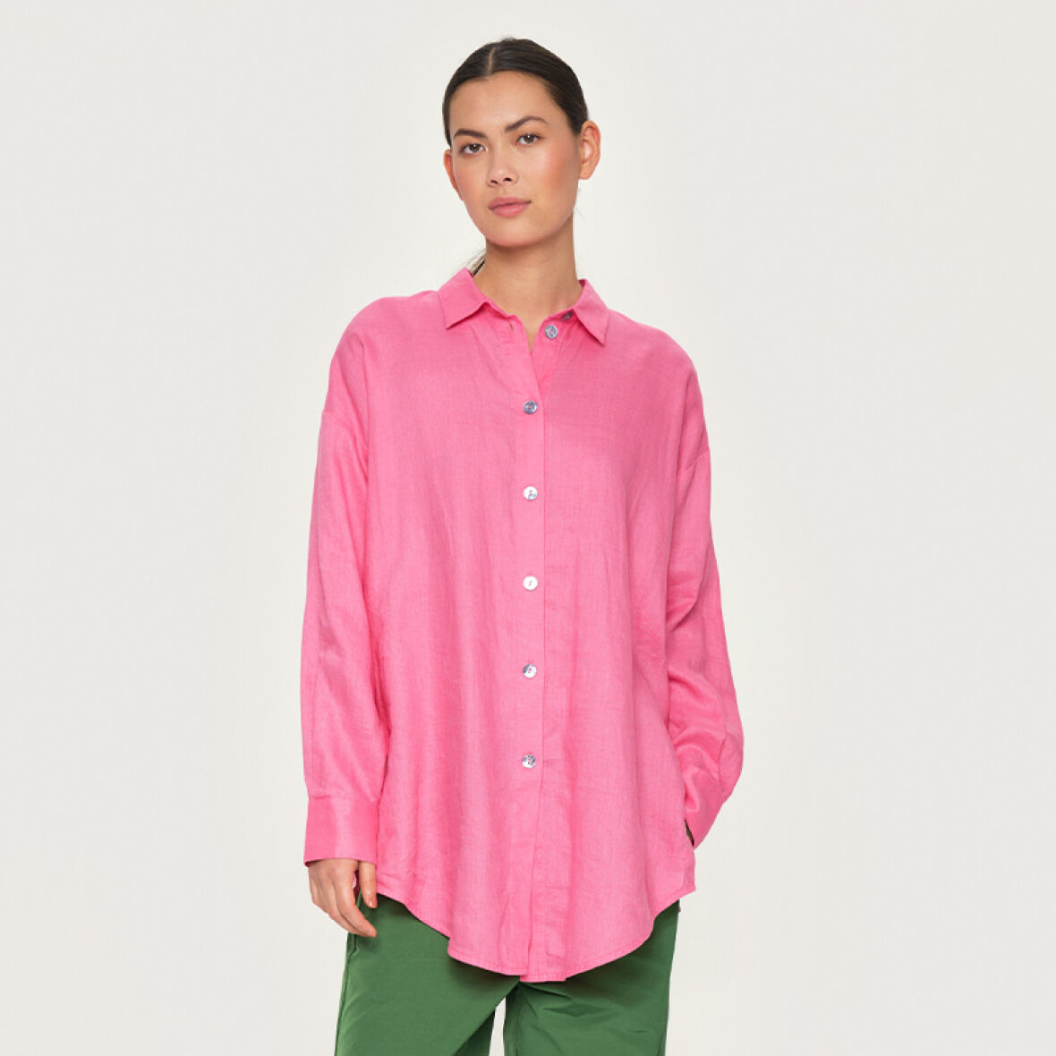 En tidløs skjorte, der nemt kan styles med næsten enhver underdel.