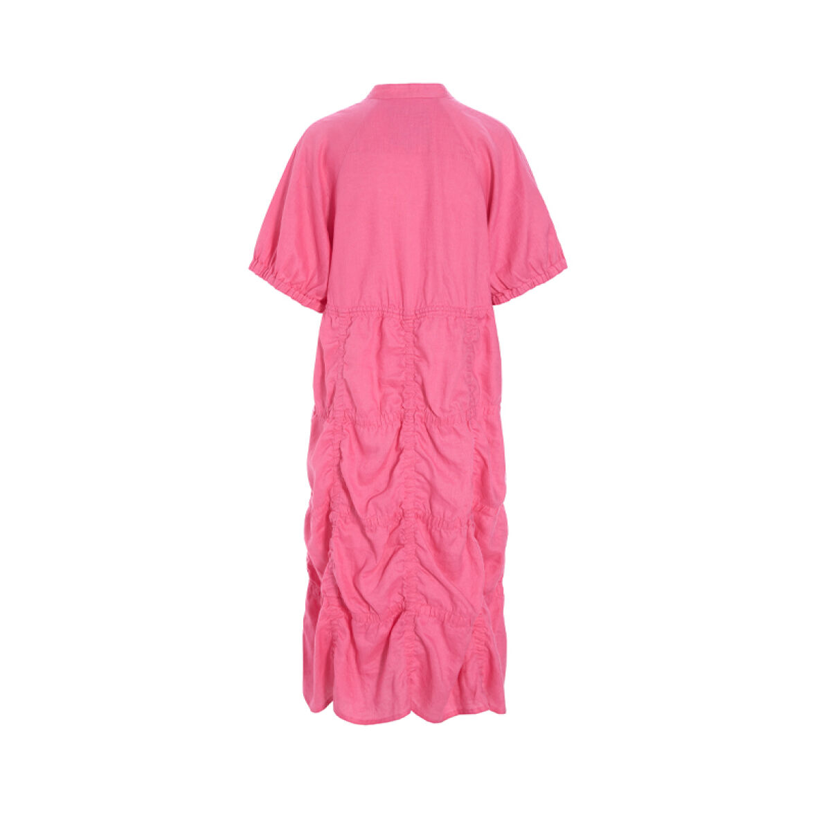 Elegant skjortekjole med rynkeeffekt på skørtet, der giver et unikt og stilfuldt udtryk.
