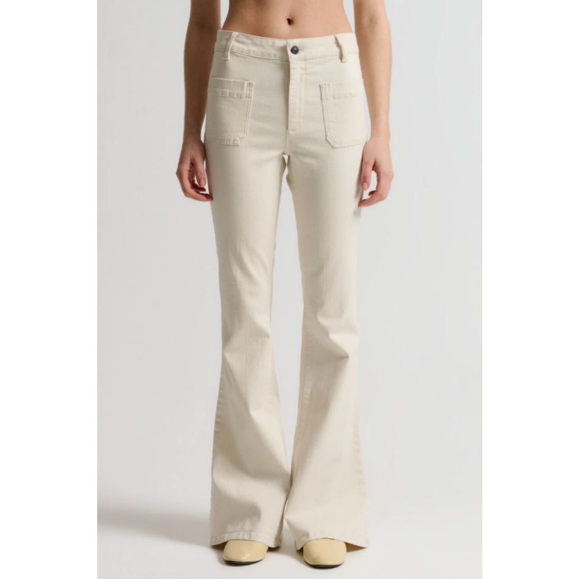 De karakteristiske brede bukseben og de elegante forlommer med patch-design tilfører et unikt præg, der gør disse jeans både alsidige og modige. Perfekte til at sætte et fashionabelt statement, uanset om du styler dem med en afslappet top eller en bluse.