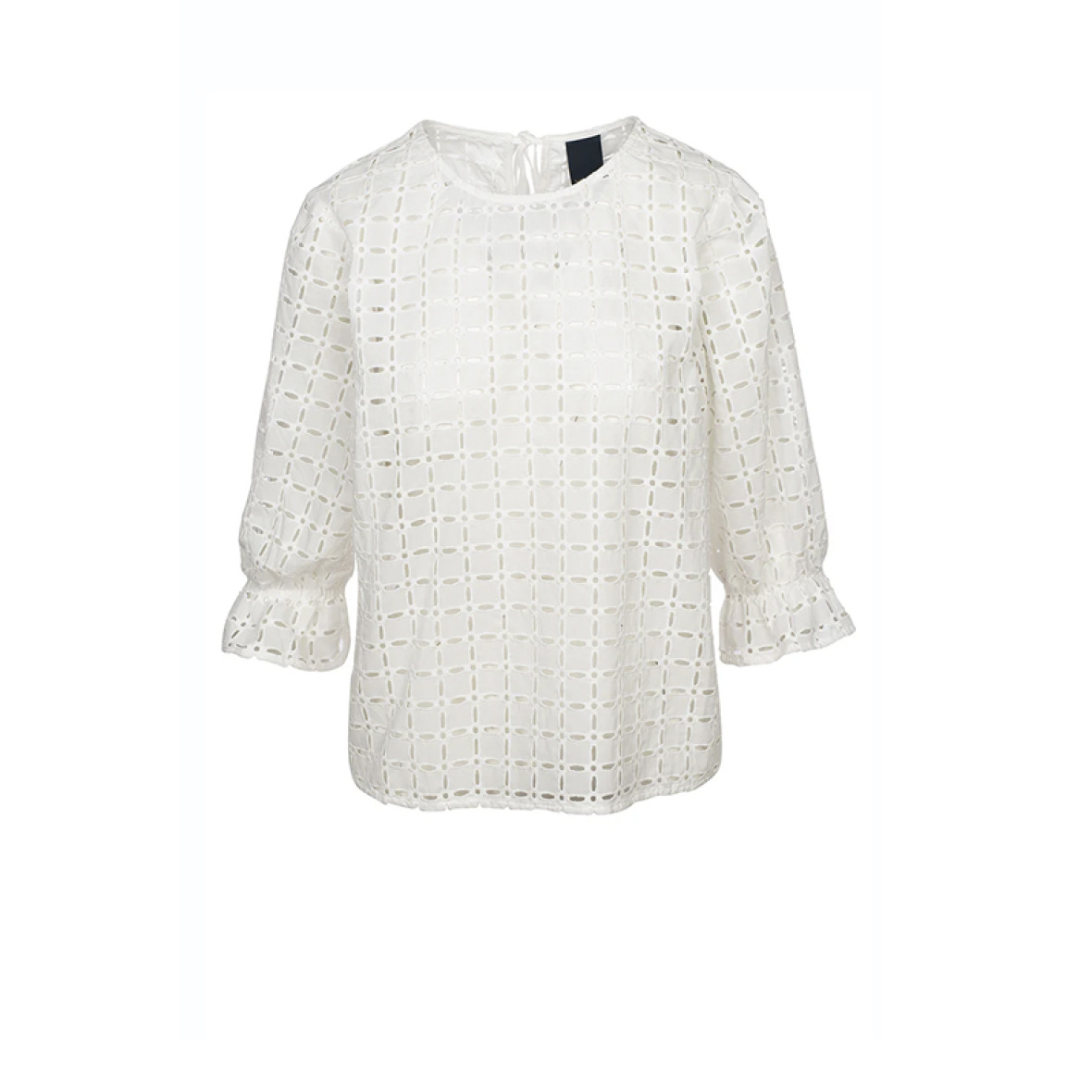 Blusen er lavet i en smuk blondekvalitet, der fremhæver dens elegante udtryk og gør den perfekt til både hverdag og fest.
