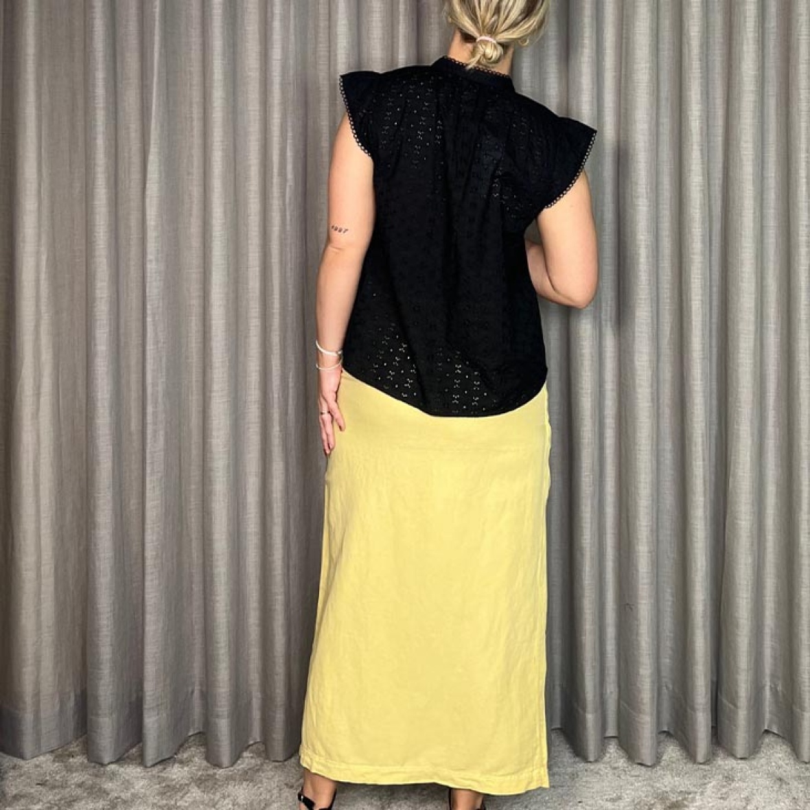 Denne elegante nederdel skaber en smuk, lang silhuet og er perfekt til foråret og sommerens lette look.