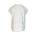 Toppen har en afrundet v-udskæring med delikat broderikant, og ærmerne har en let puf-effekt med samme smukke finish.