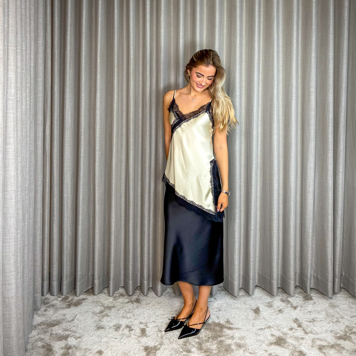 Eksklusiv nederdel i en smuk nuance fra Imperial. Nederdelen er fremstillet i en blank og let satinkvalitet, der smyger sig elegant om kroppen og skaber et feminint udtryk. Den har en behagelig, skjult elastikkant i taljen og falder med let vidde, hvilket giver et flot fald og god bevægelse. Perfekt til festlige anledninger – style den med en elegant top og høje hæle for et sofistikeret look.