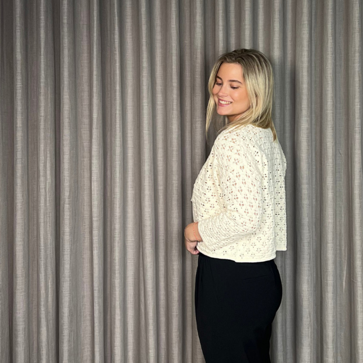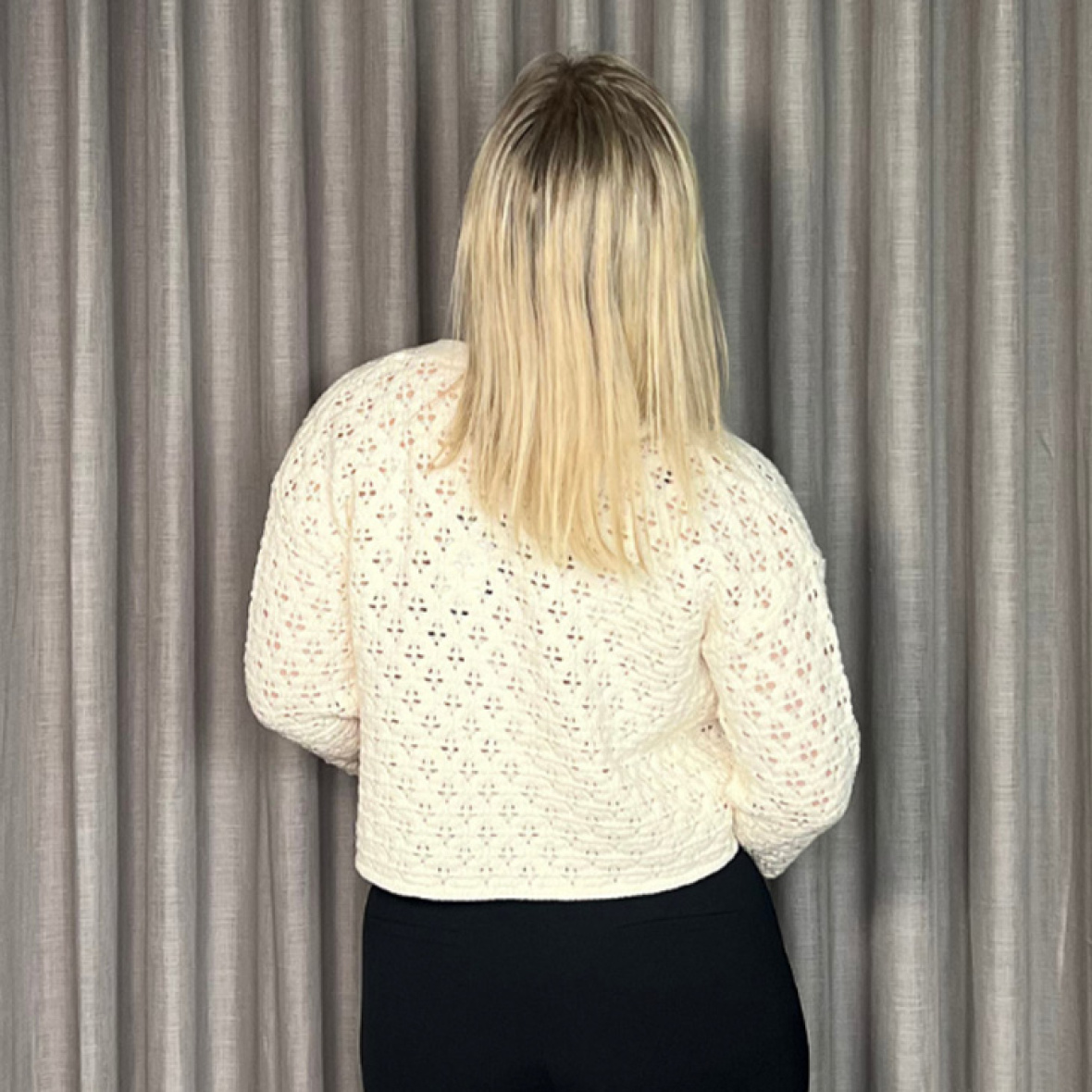 Let og yndig kort cardigan fra Soulmate i vævet mønster
