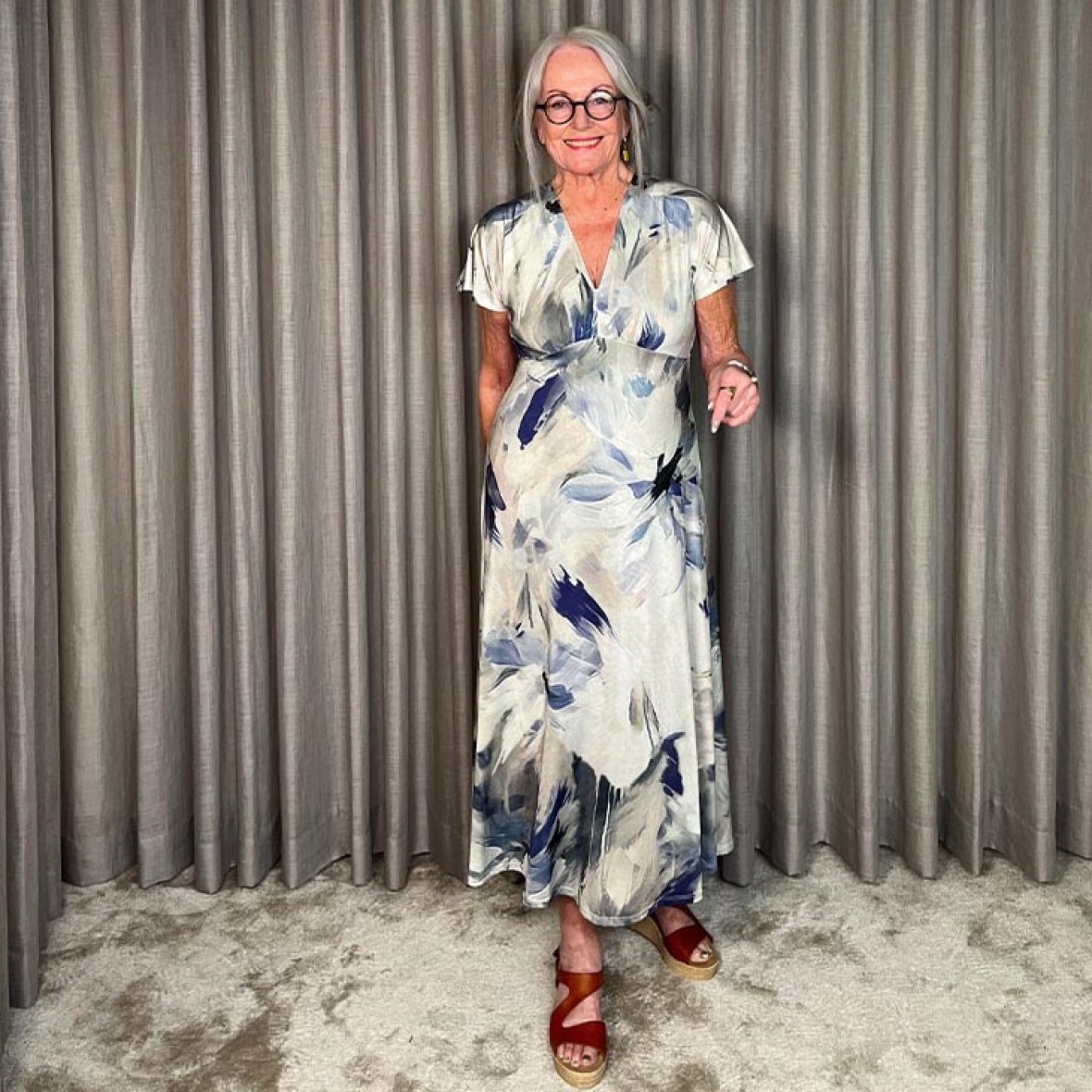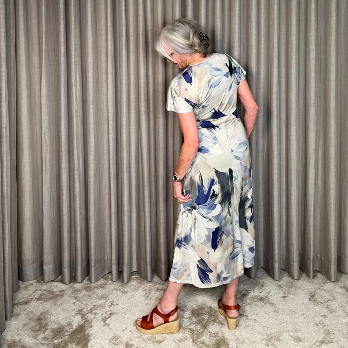 Feminin kjole fra In Front med korte ærmer og en flatterende V-udskæring.