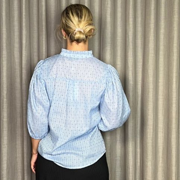 De trekvartlange ærmer har en let puf, som tilfører et romantisk touch.