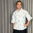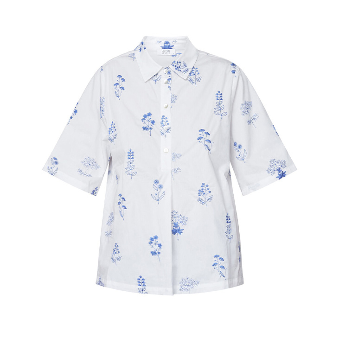 Love1351 er en feminin skjorte med fine, broderede blomster, der giver et romantisk og sommerligt udtryk.