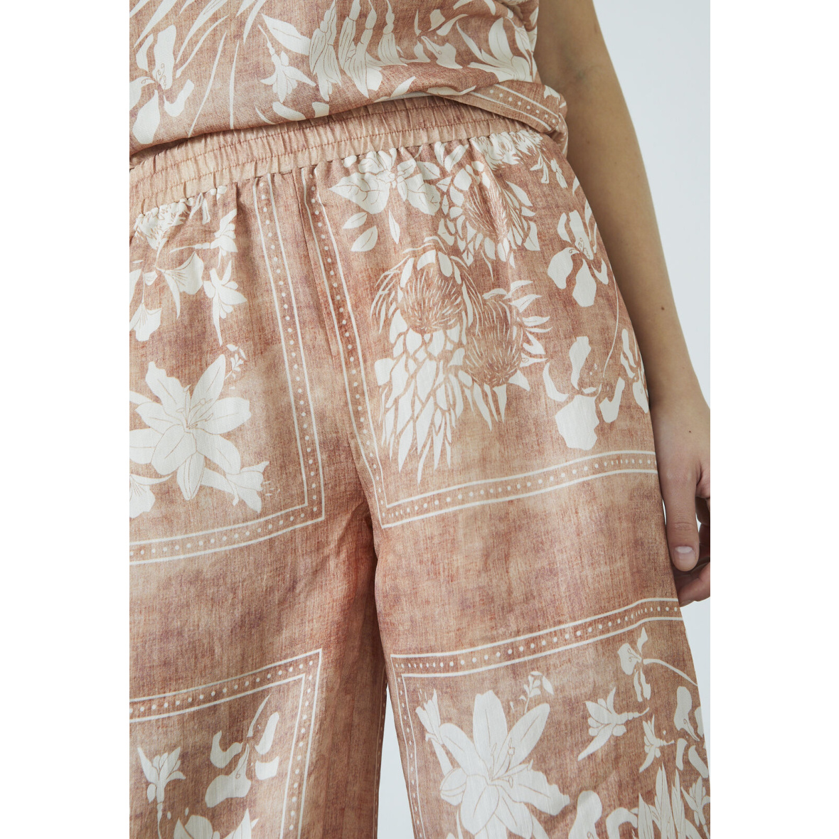 Den elastiske talje sikrer en perfekt fit, mens det unikke blomstermønster tilføjer et stilfuldt touch.