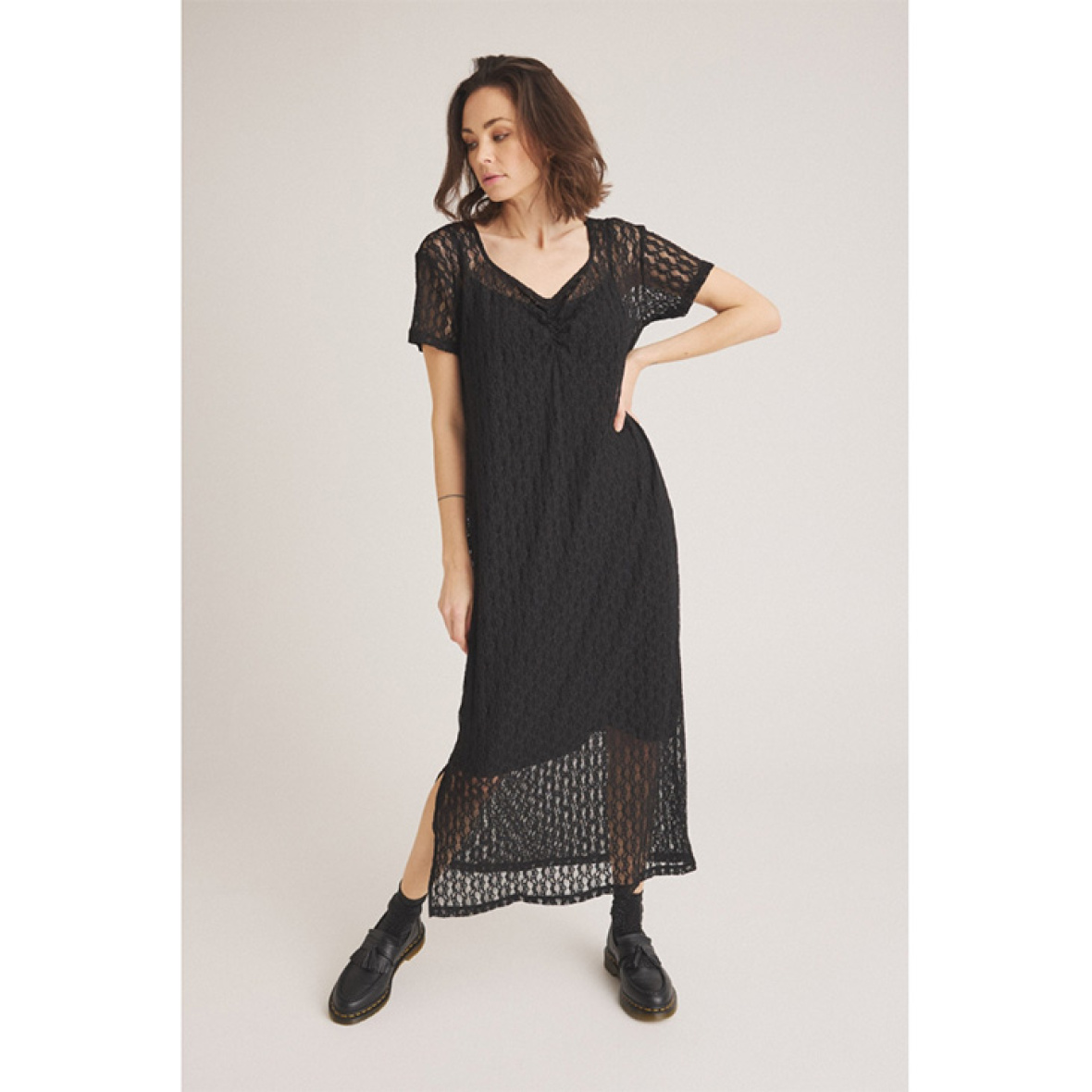 Elegant blondekjole fra LUXZUZ // ONE TWO i en transparent, elastisk kvalitet, der smyger sig flot om kroppen.
