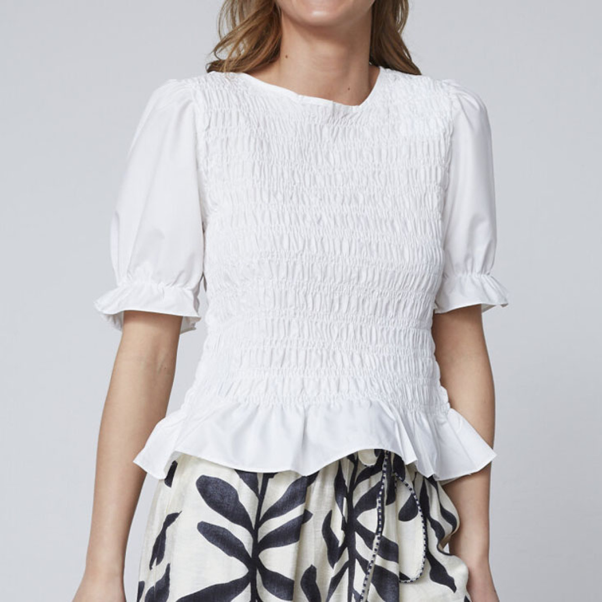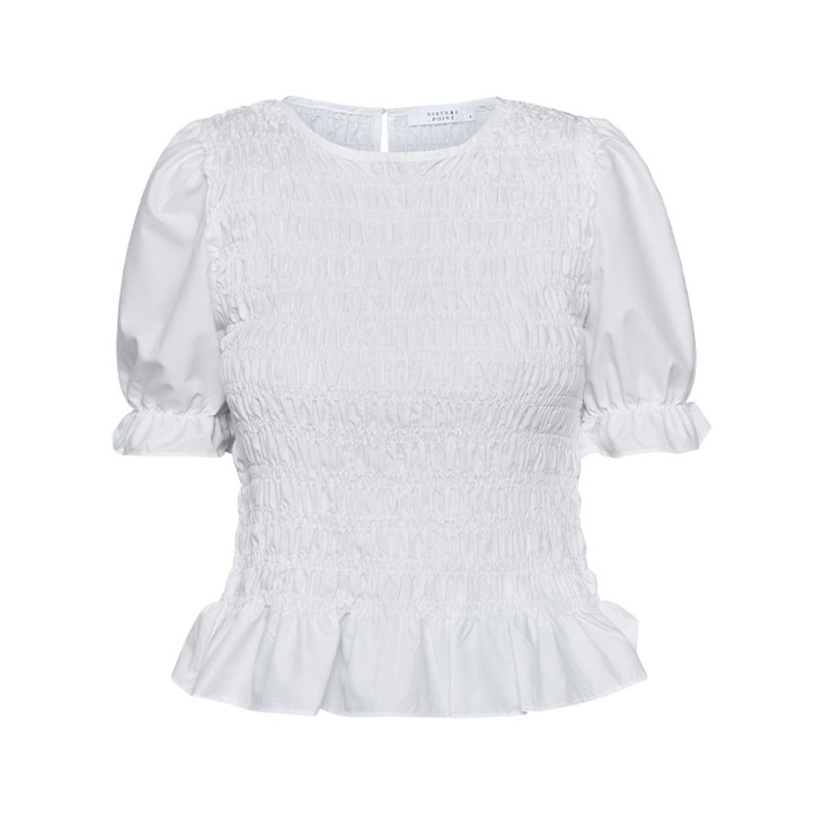 NIX-SS13 er en kort, feminin t-shirt med smock-detaljer henover mave og ryg, der skaber en smuk og flatterende pasform.