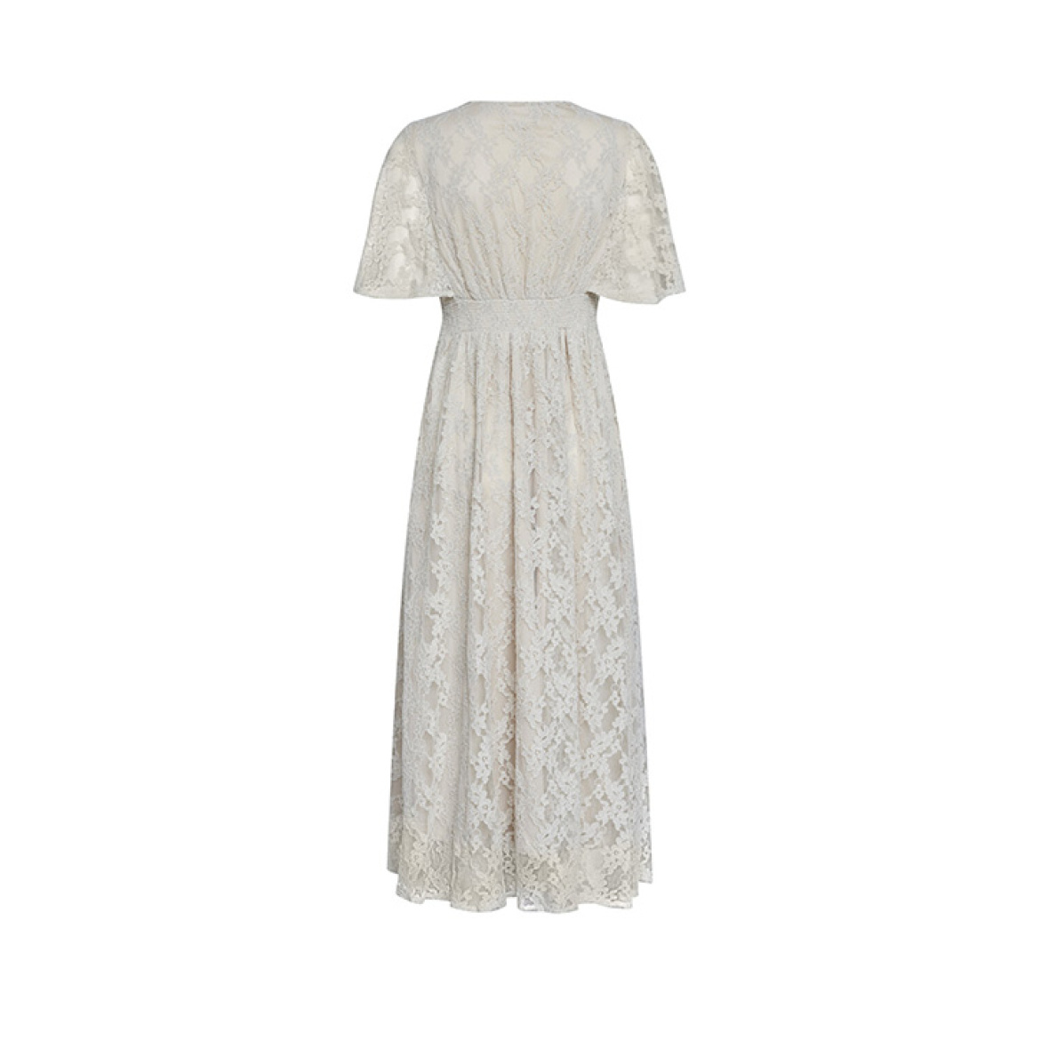 Kjolen har en overskæring under brystet og elastikstykke i ryggen.