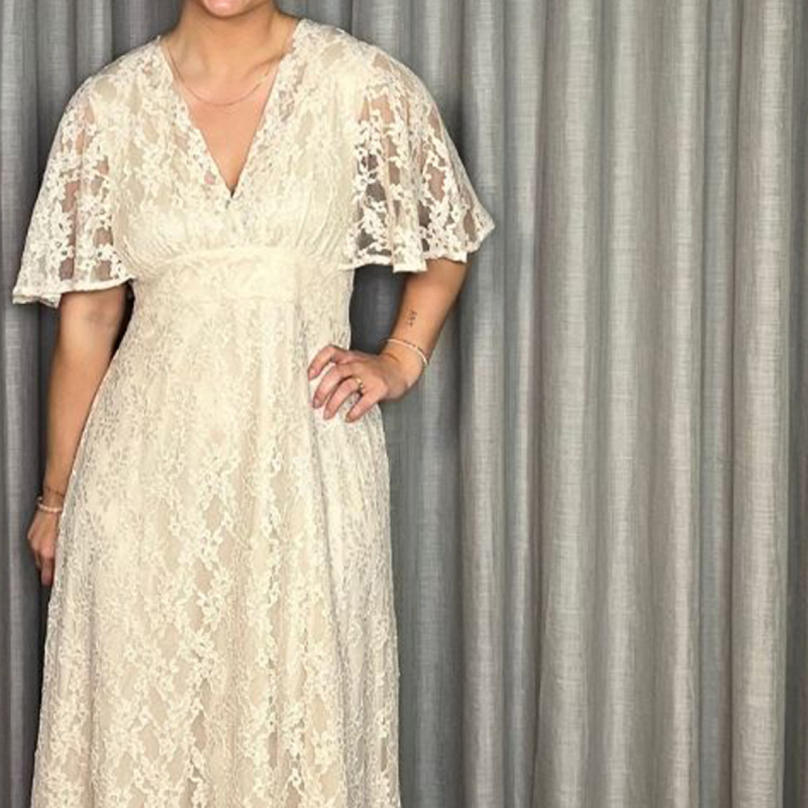 Smuk kjole fra Sisters Point med korte, brede ærmer og V-udskæring.