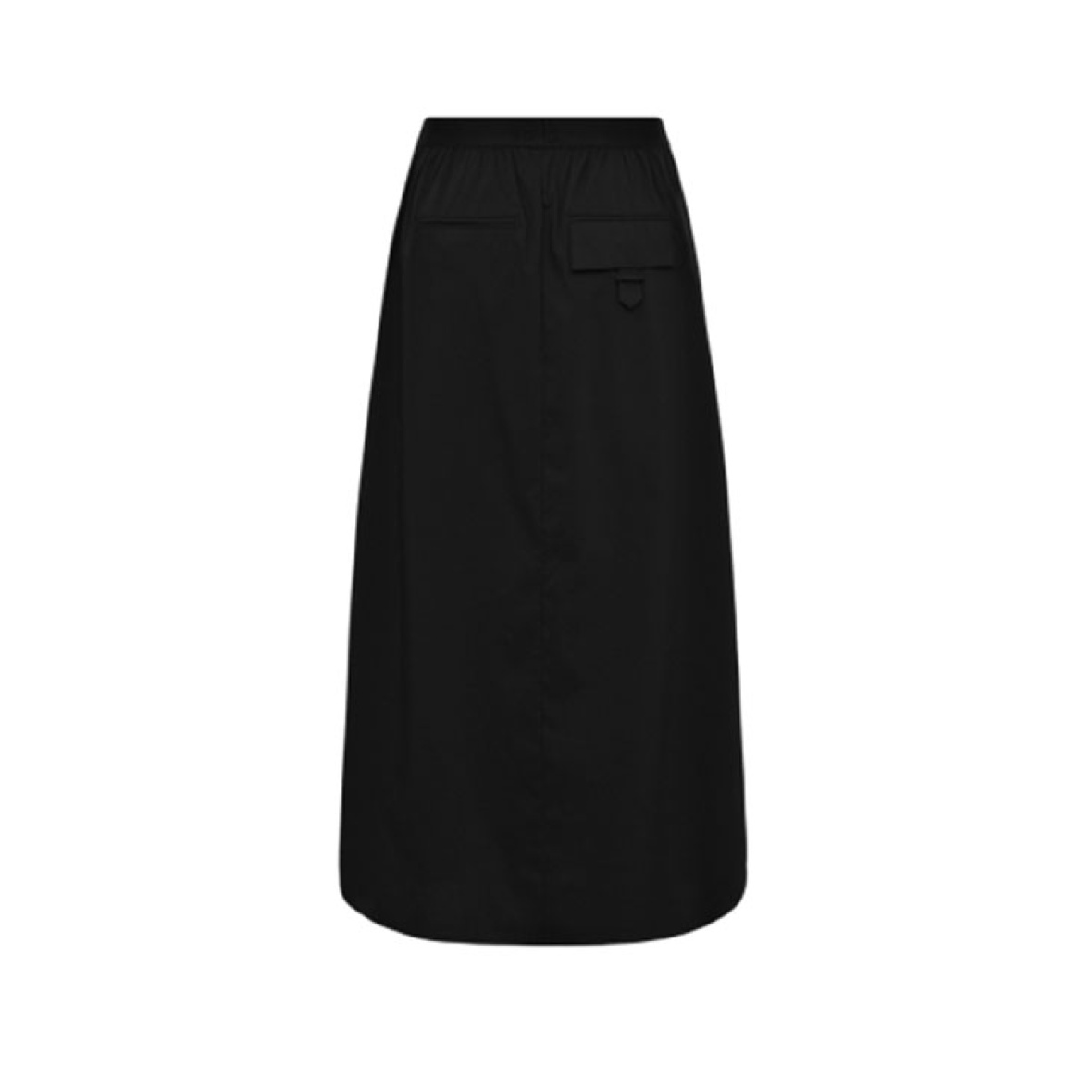 Denne sorte midi-nederdel er en stilren og alsidig favorit i garderoben. Den har et enkelt, men sofistikeret snit med let vidde og en behagelig elastisk talje, der sikrer en god pasform. Stoffet falder flot og giver nederdelen et let og feminint udtryk – perfekt til både hverdag og fest. Style den med en tætsiddende top, en skjorte eller en strik for et personligt look. En klassiker, du vil vende tilbage til igen og igen.