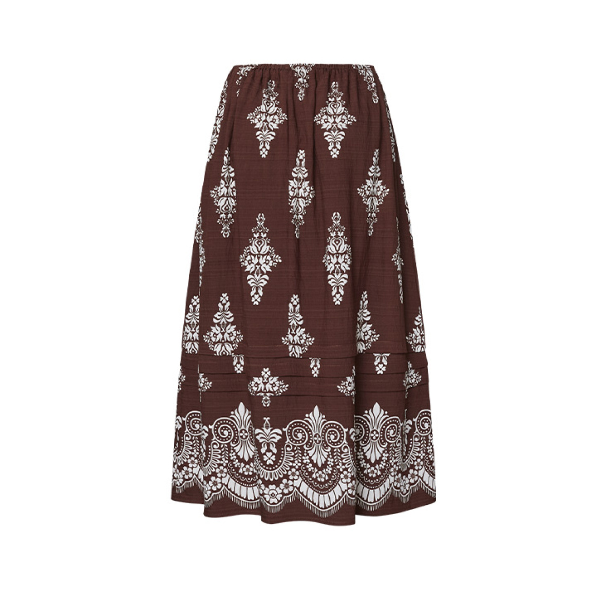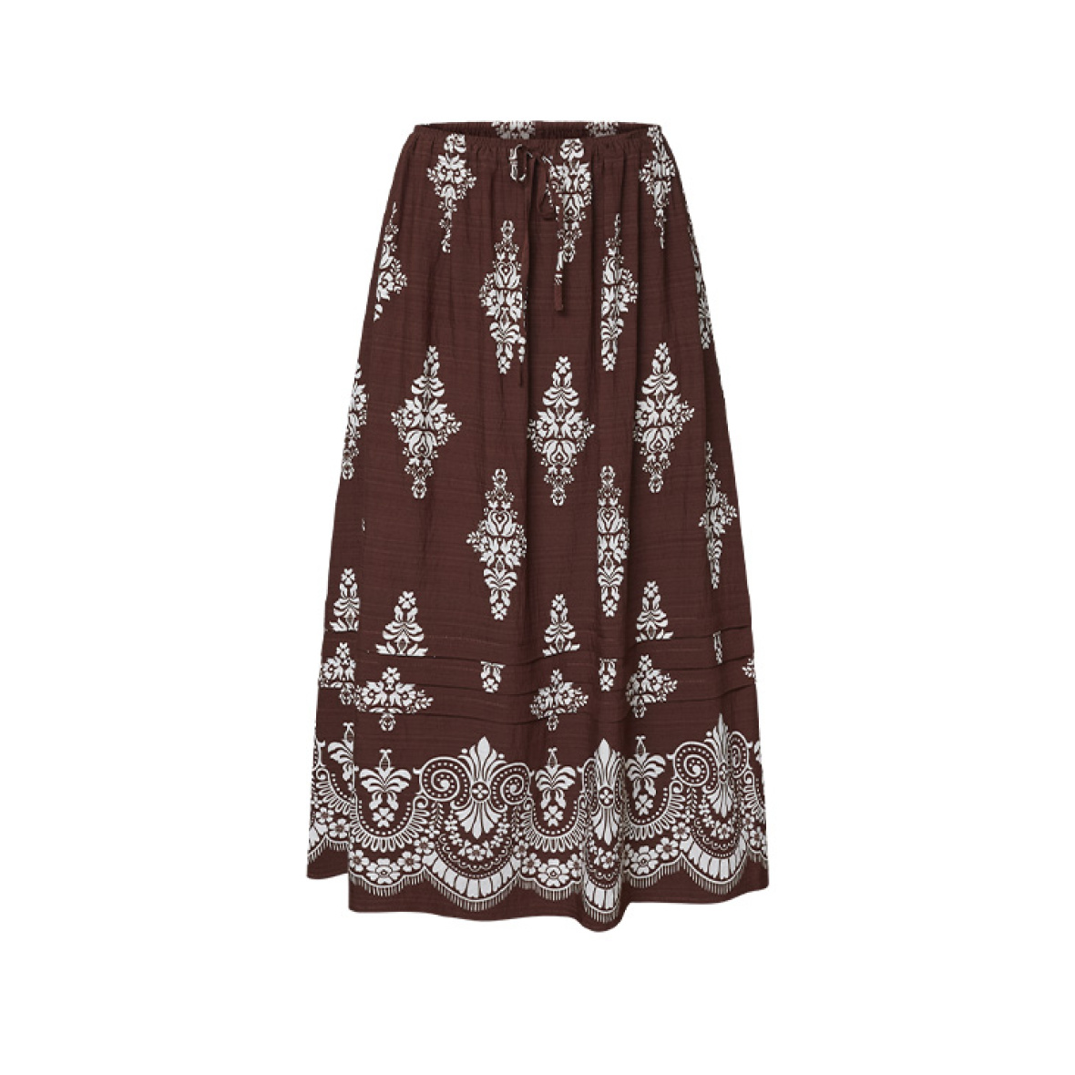Det florale mønster skaber et romantisk udtryk, og den brede flæsekant forneden giver nederdelen et ekstra feminint touch.