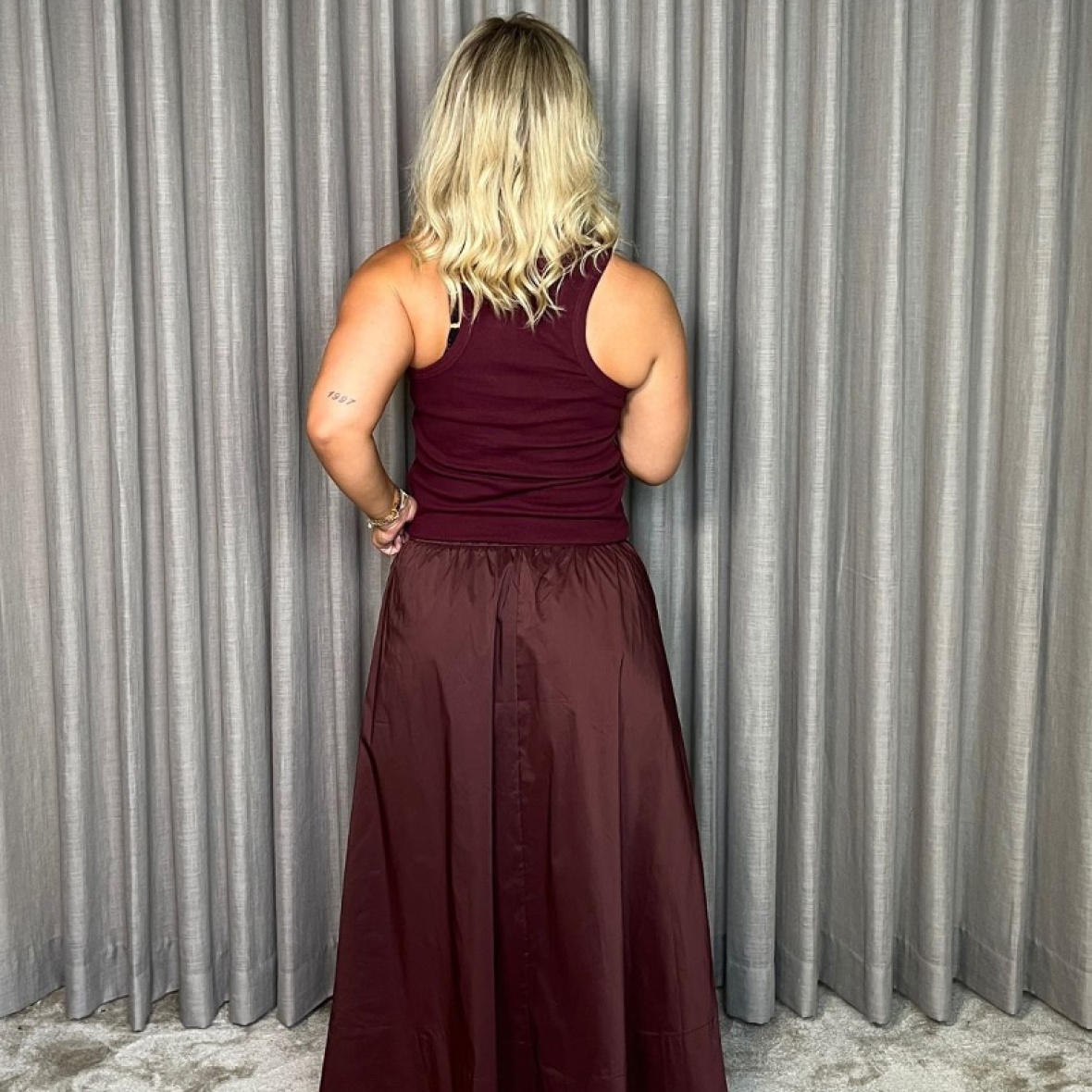 Toppen har en afslappet pasform og brede stropper, hvilket giver både komfort og stil.