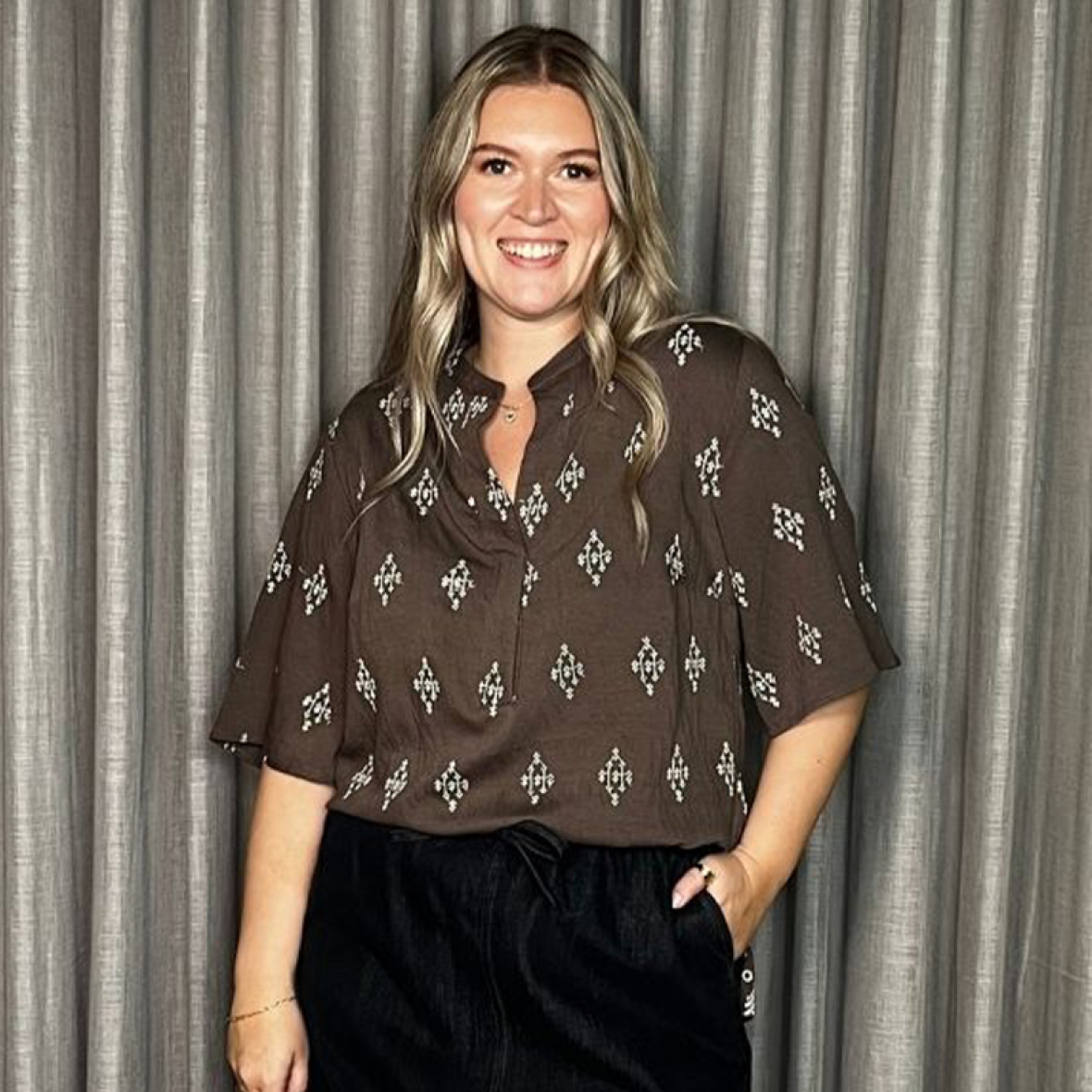 Den buede bund giver en elegant finish, og den ligger dejligt løst i viskose-lin-kvalitet