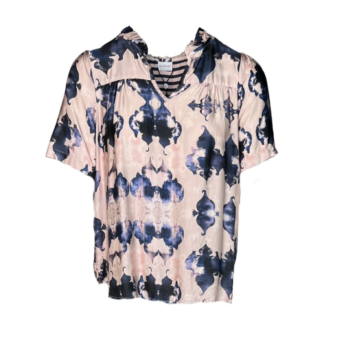 Bluse med flot print i forskellige nuancer, som skaber liv og dybde.