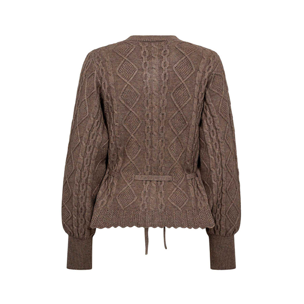 Cardigan med kabelstrikmønster og stilfuld bindedetalje foran for en personlig pasform. Lange ærmer og blød finish gør den perfekt til kølige dage. Ideel til både afslappede og formelle looks.
