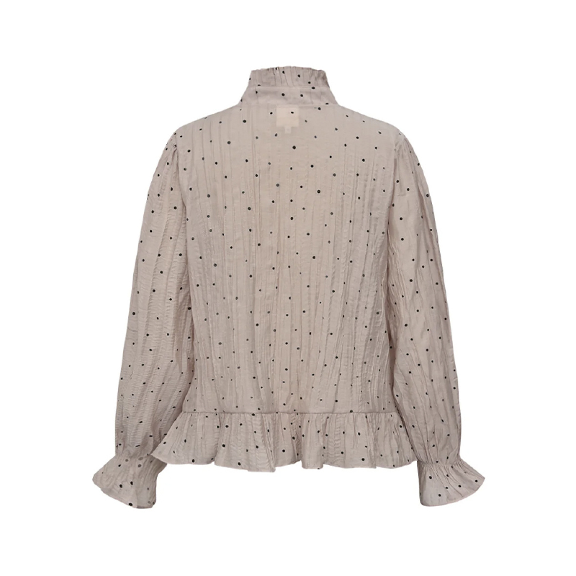 Sart rosa skjorte med de fineste flæsedetaljer og en elegant v-udskæring.
