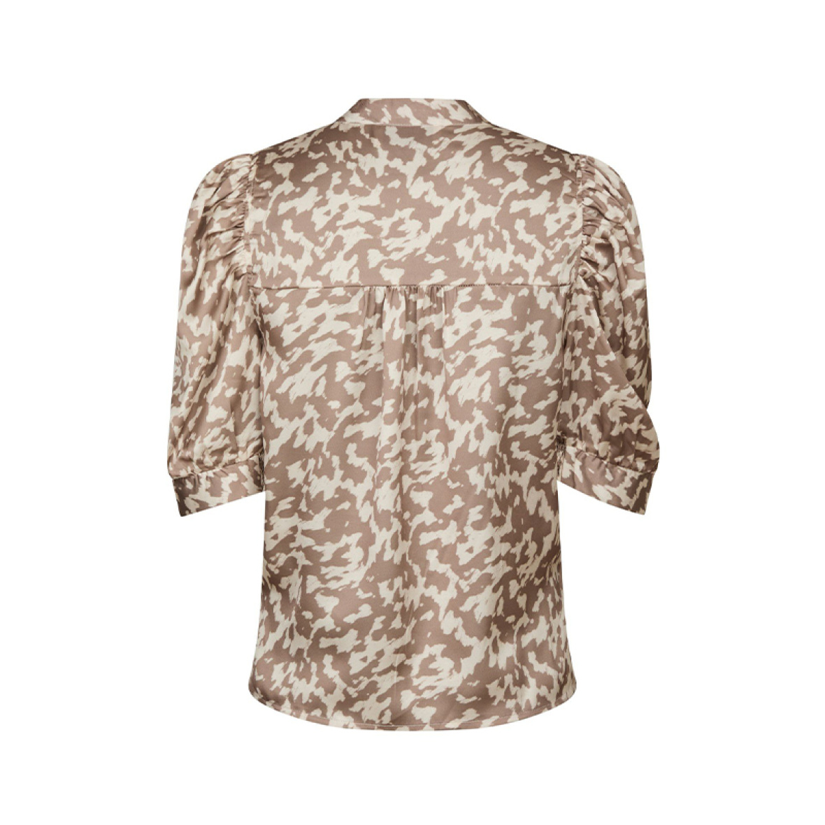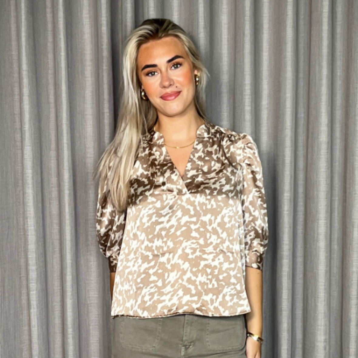 Elegant bluse med korte ærmer med let rynkeeffekt og en åben halsudskæring foran.