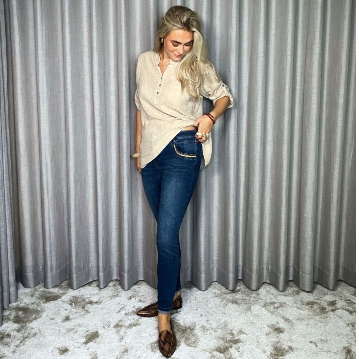 Disse jeans har en tætsiddende pasform, der fremhæver figuren på en elegant måde.