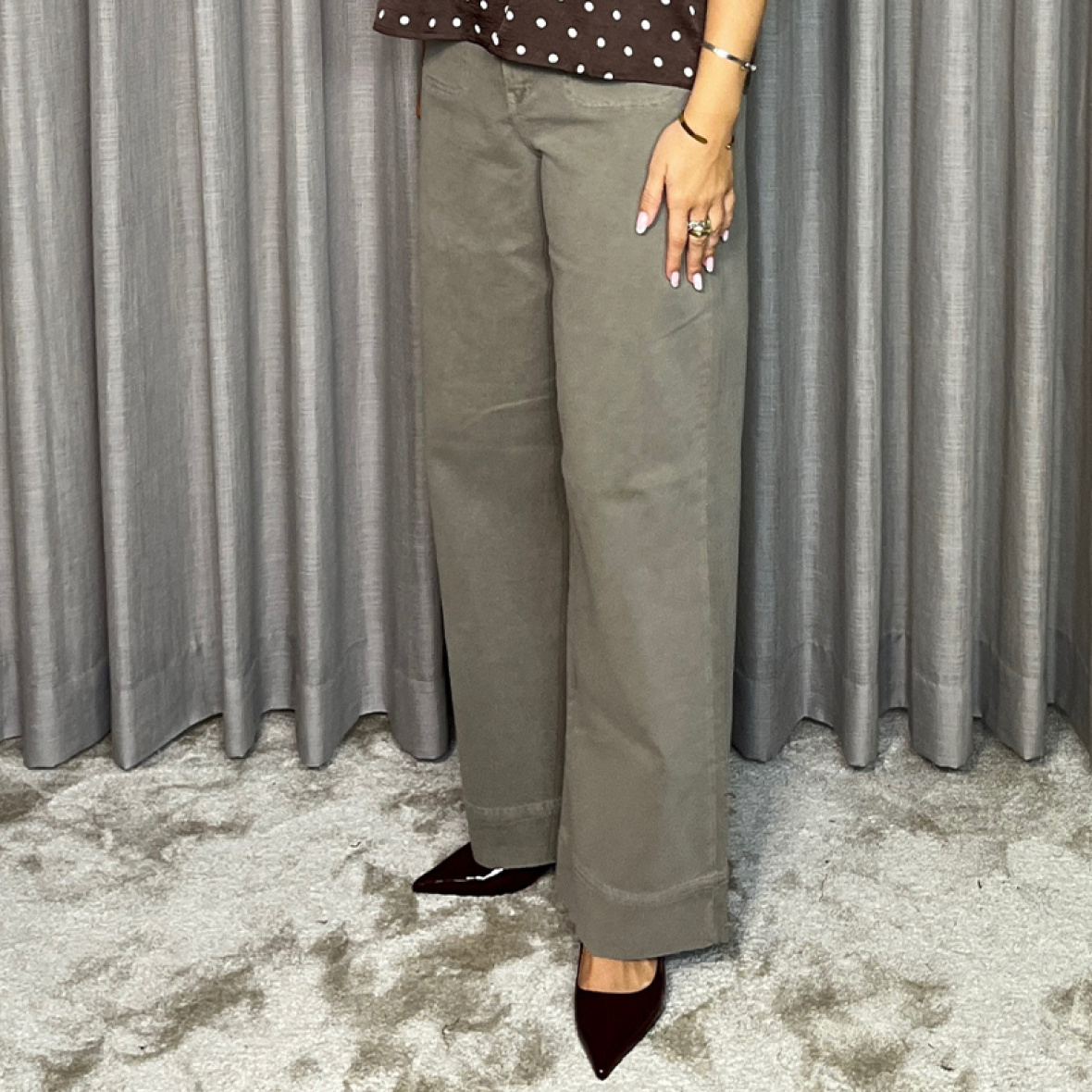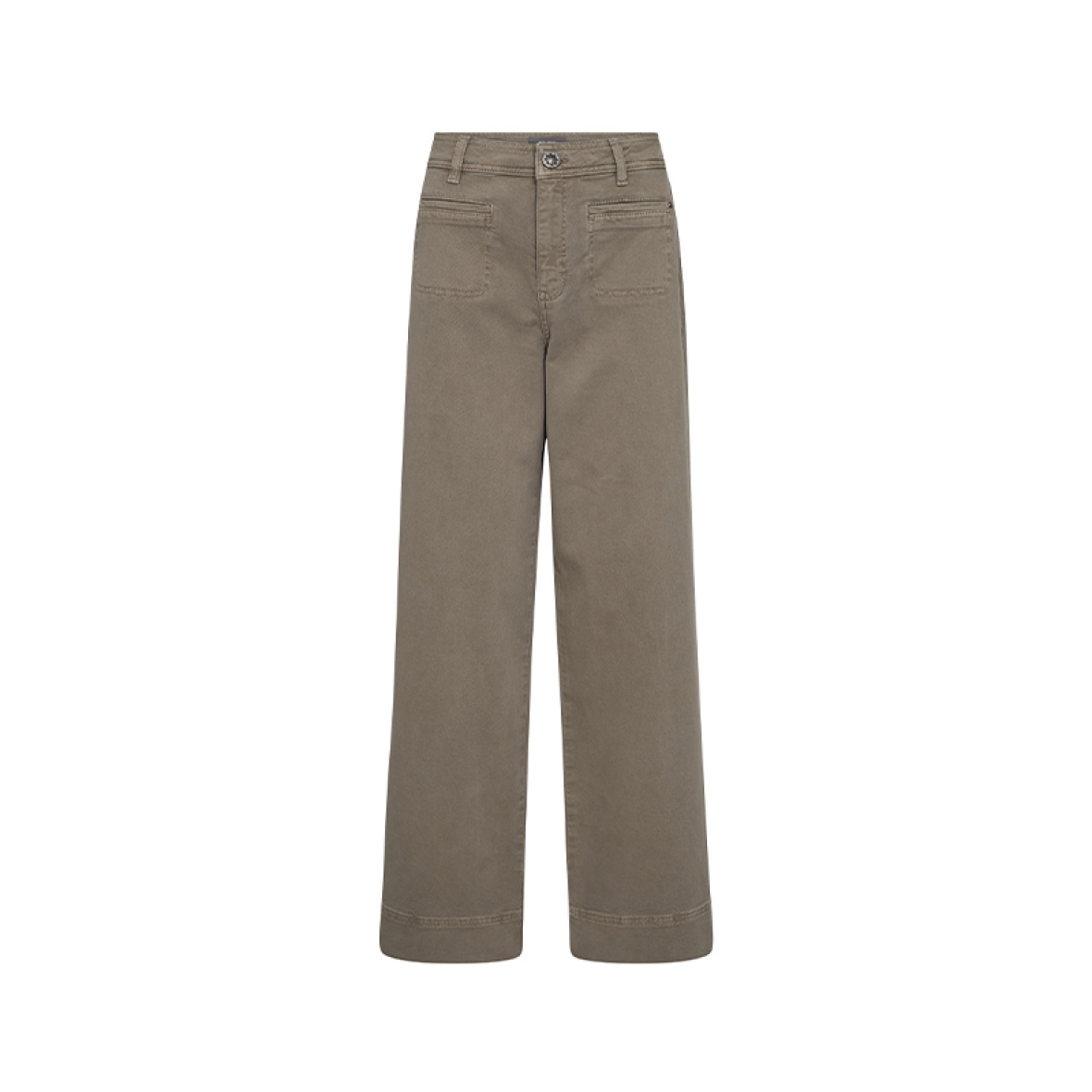 Disse bukser har et flot wide leg snit og kommer i en smuk oliven grøn farve.