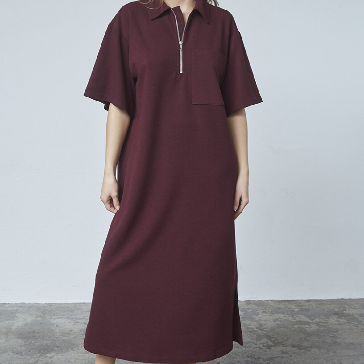 Kjolen har en gennemgående lynlås foran og en praktisk lomme i den ene side, som giver et sporty touch.