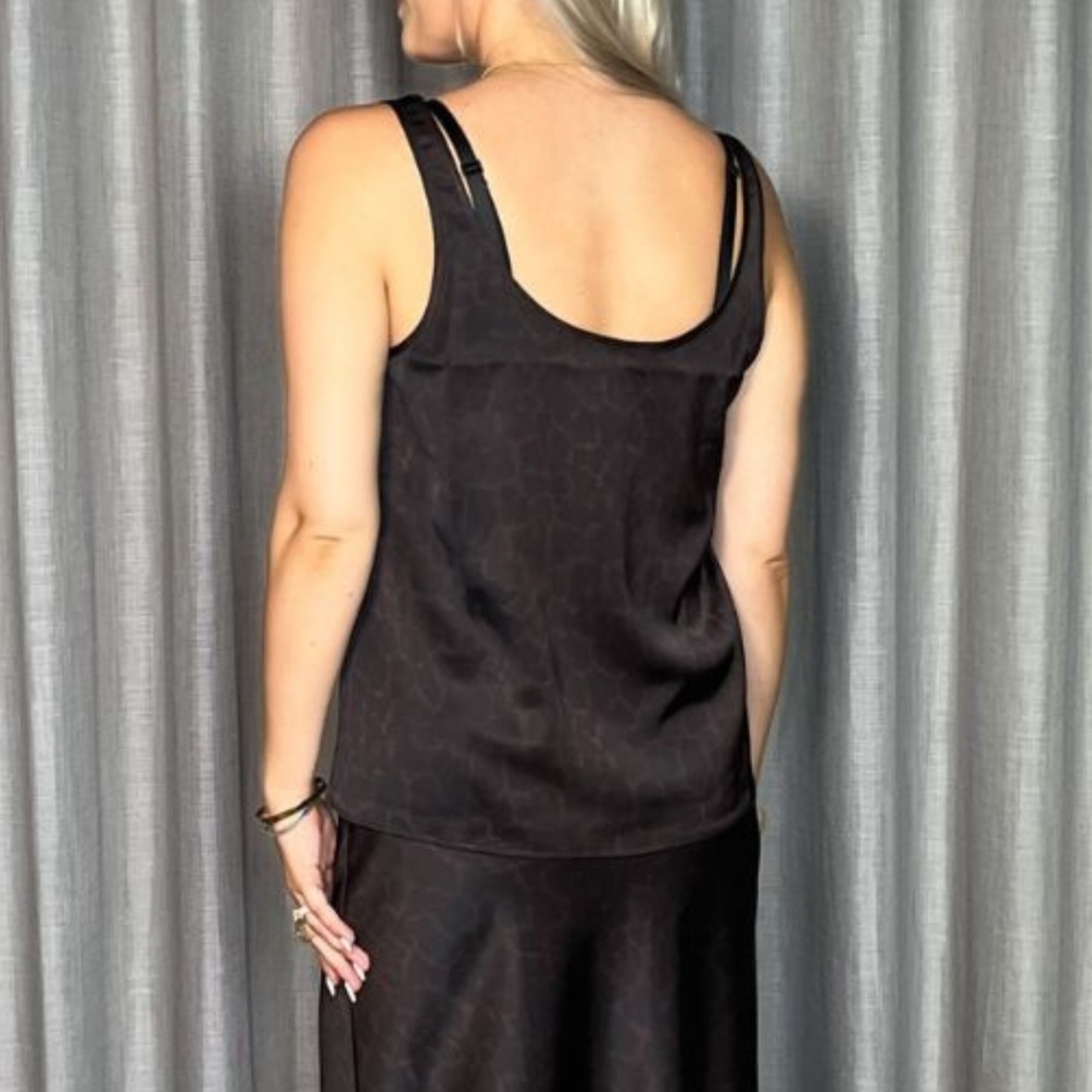 Denne top er designet i et flot leopardmønster og har en løstsiddende pasform, der falder smukt om kroppen.