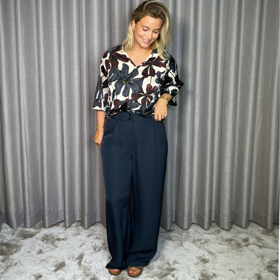 Den høje talje fremhæver din silhuet, mens det brede ben giver et stilfuldt og moderne udtryk.