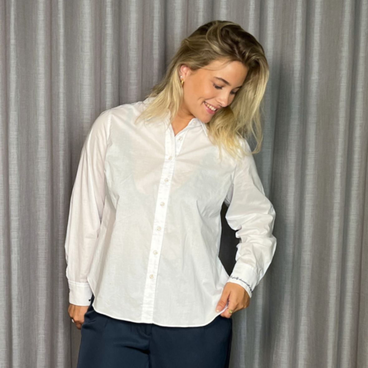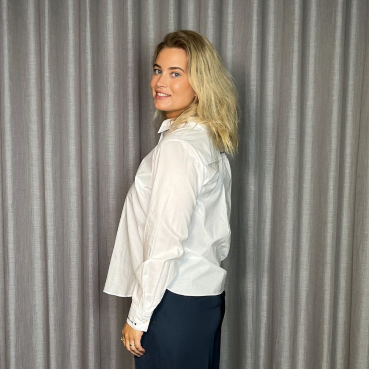 Denne hvide skjorte er et tidløst og feminint valg med et moderne twist.