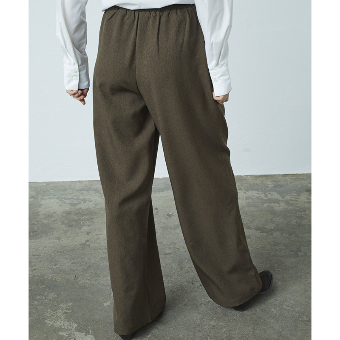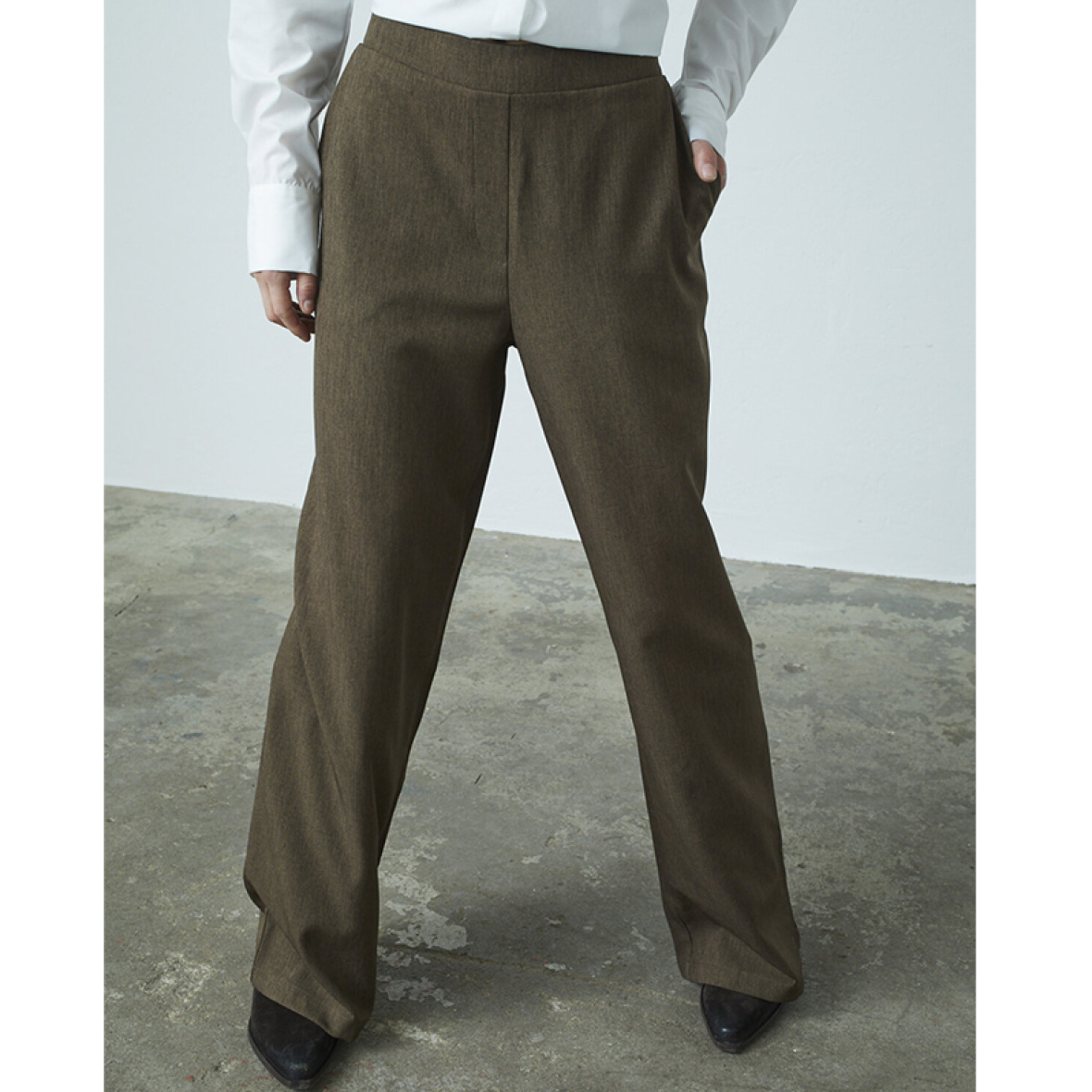 Love & Divine Love1345 er et par elegante bukser med høj talje og brede ben i en blød brun melange.