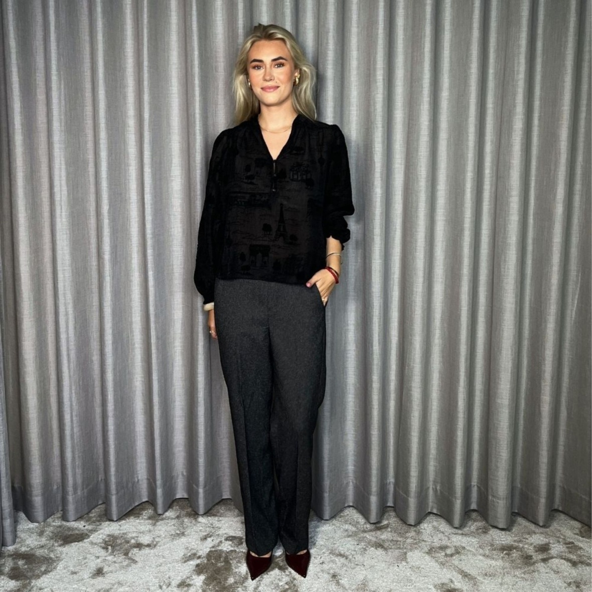 De har elastisk linning, pressefolder og bæltestropper samt fine læg bagpå, som tilføjer struktur og bevægelighed.