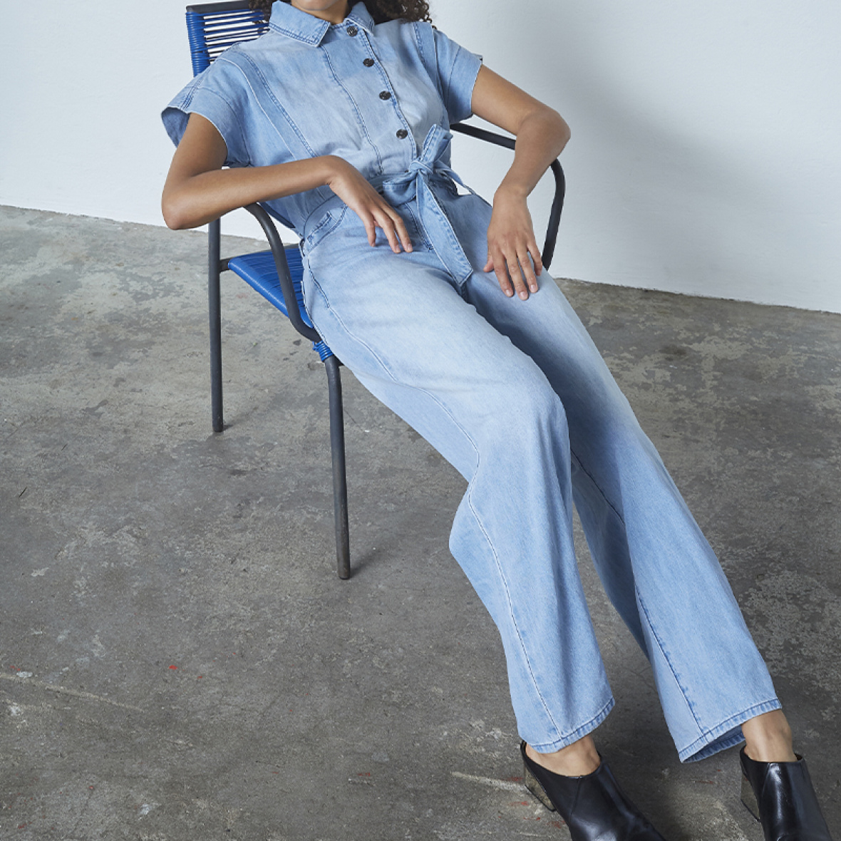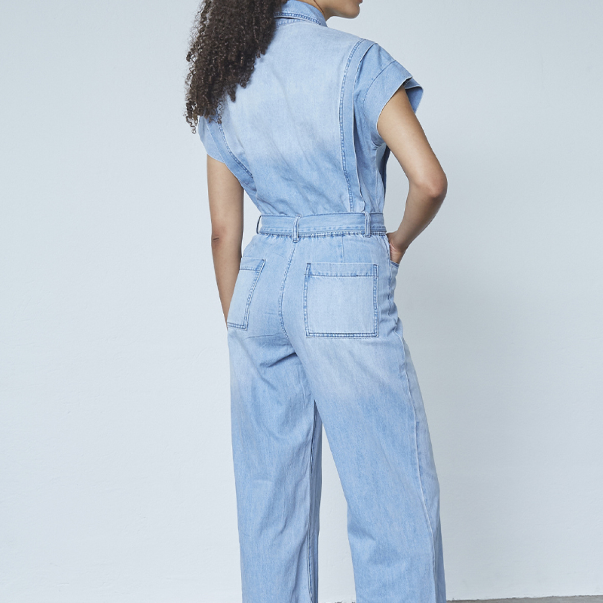 Superflot buksedragt i en skøn denimblå farve – perfekt til dig, der vil kombinere komfort med stil.