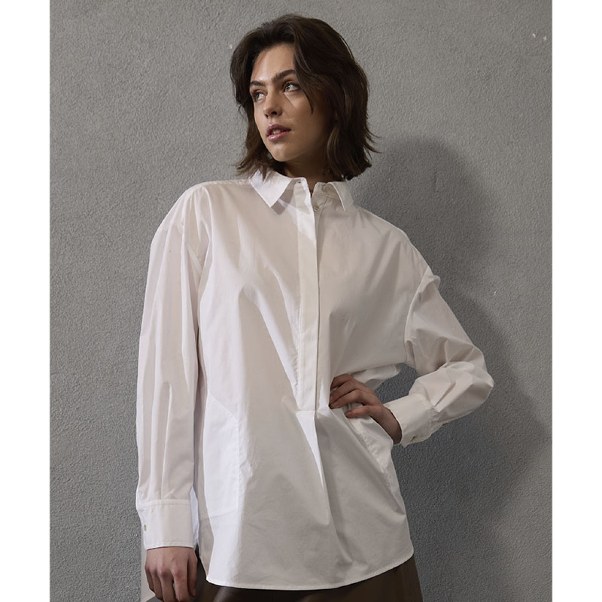 Skjorten har et tidløst design med skjult knaplukning og en flot krave, som giver et sofistikeret udtryk.