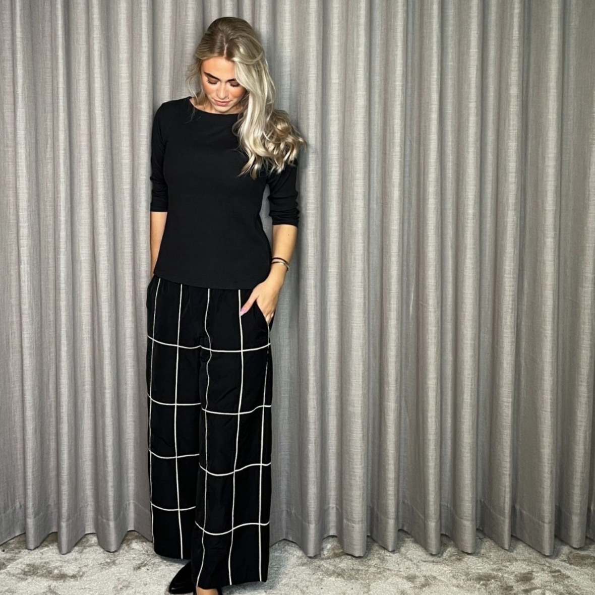De har en afslappet pasform med brede ben og en komfortabel elastik i taljen, som giver en fleksibel og flatterende pasform.