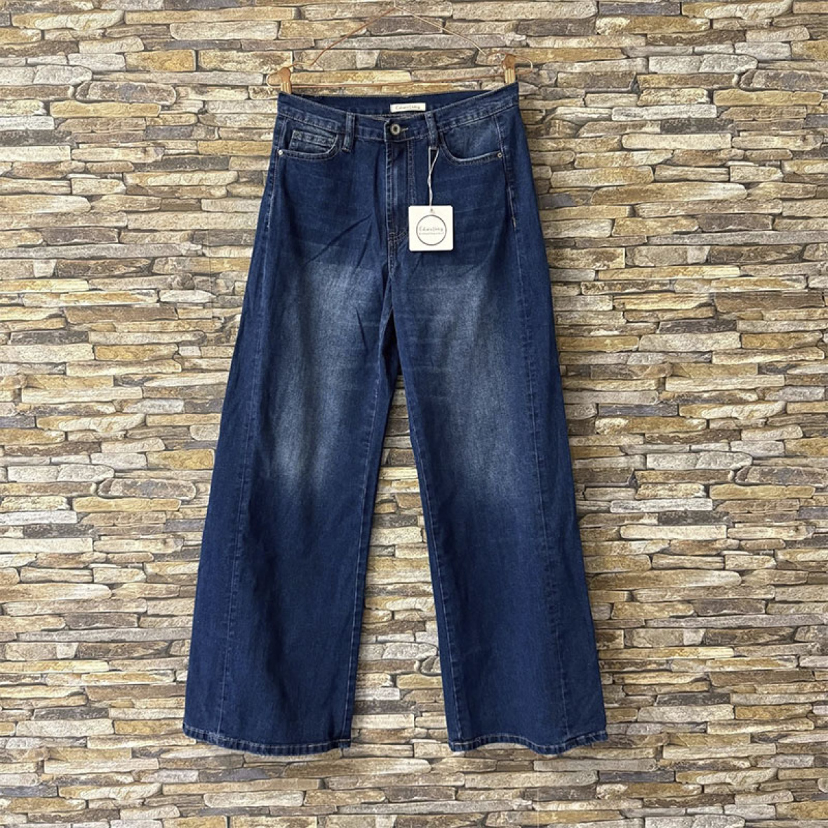 Den løse pasform giver et afslappet udtryk, mens den mørkeblå denimfarve tilføjer et sofistikeret twist.