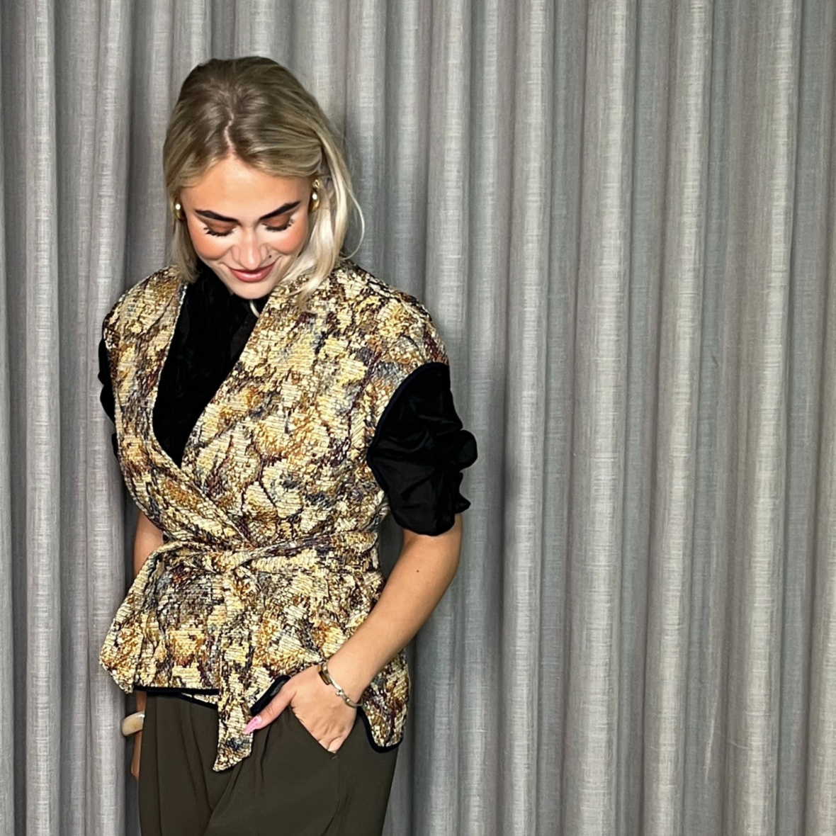 Denne smukke vest fås i en masse skønne farver og er designet med et feminint bindebånd i taljen (som kan tages af), så du nemt kan skabe en flot silhuet.