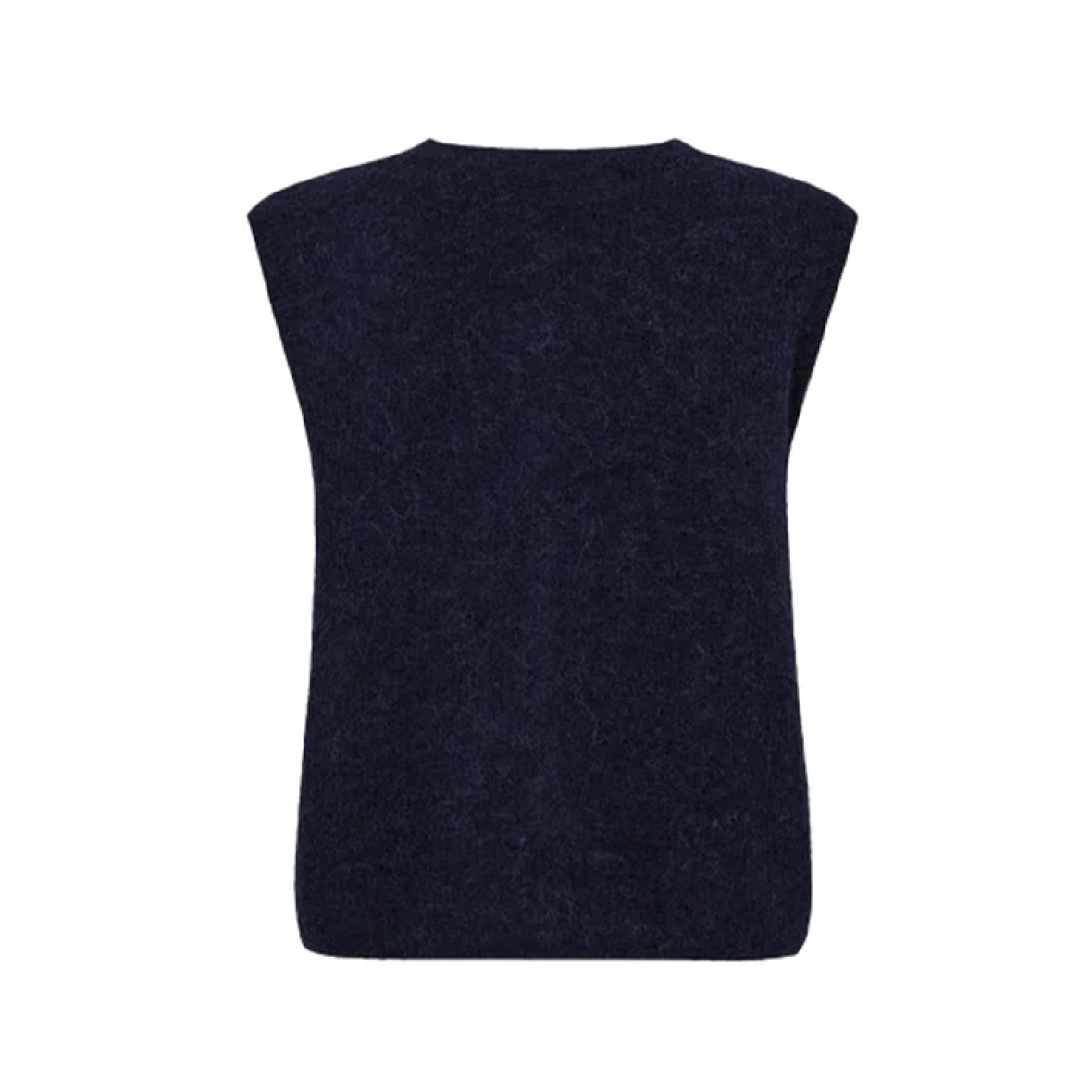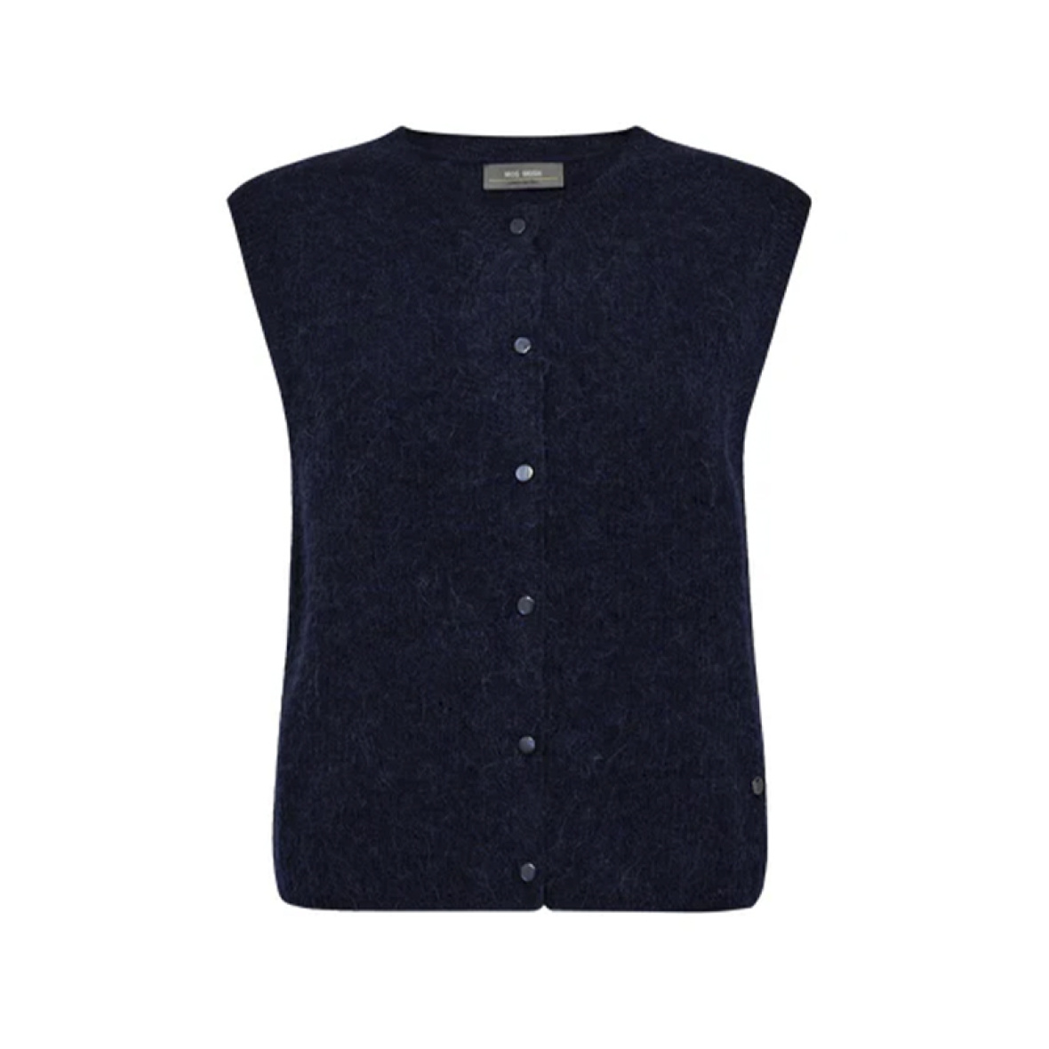 Denne fine mørkeblå strikvest er et stilfuldt og alsidigt item til din garderobe.