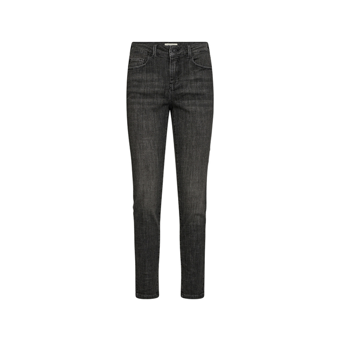 Disse grå/sorte tætsiddende jeans er den perfekte kombination af komfort og stil.