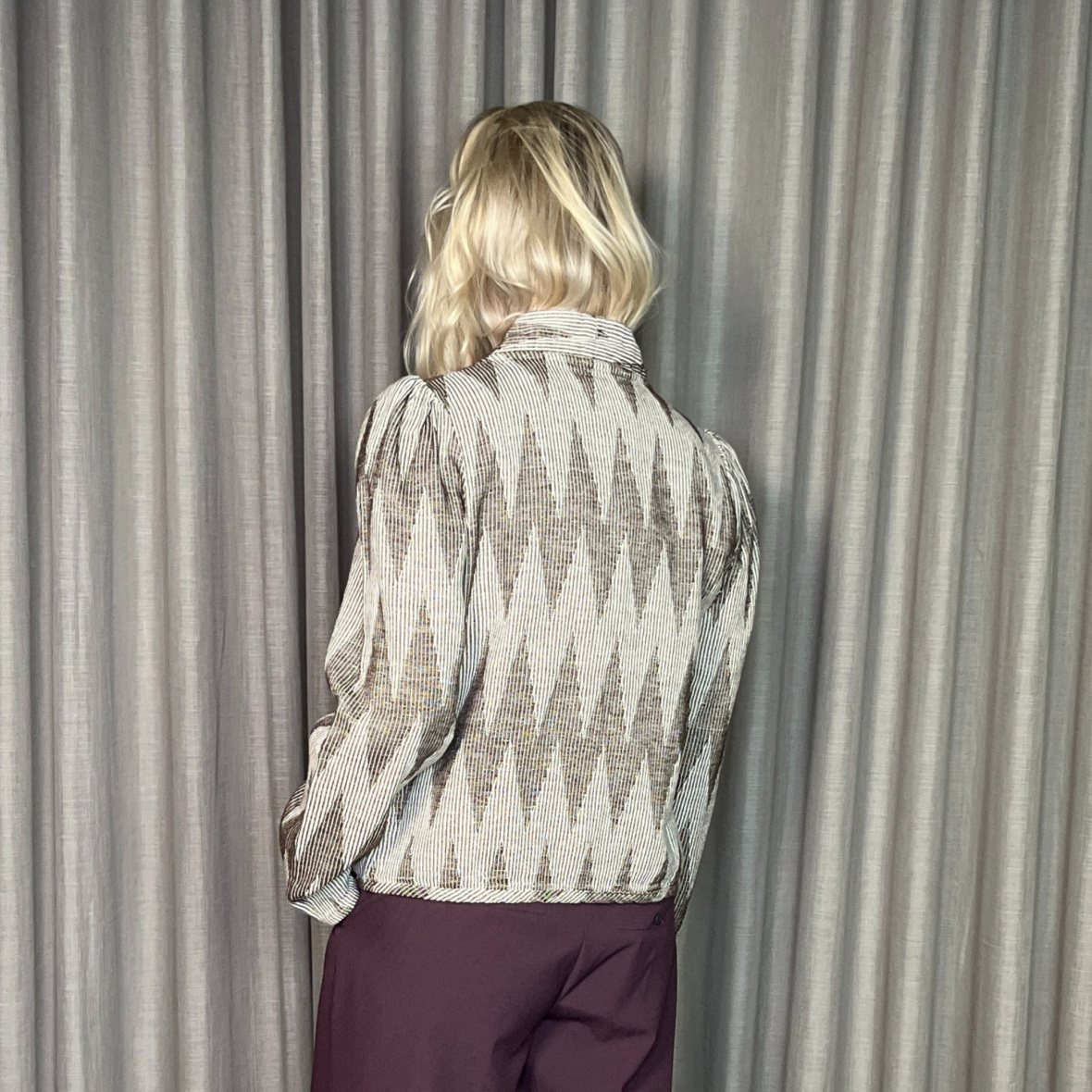 Tilføj et moderne twist til din garderobe med denne lette jakke i et grafisk brun-hvidt mønster.
