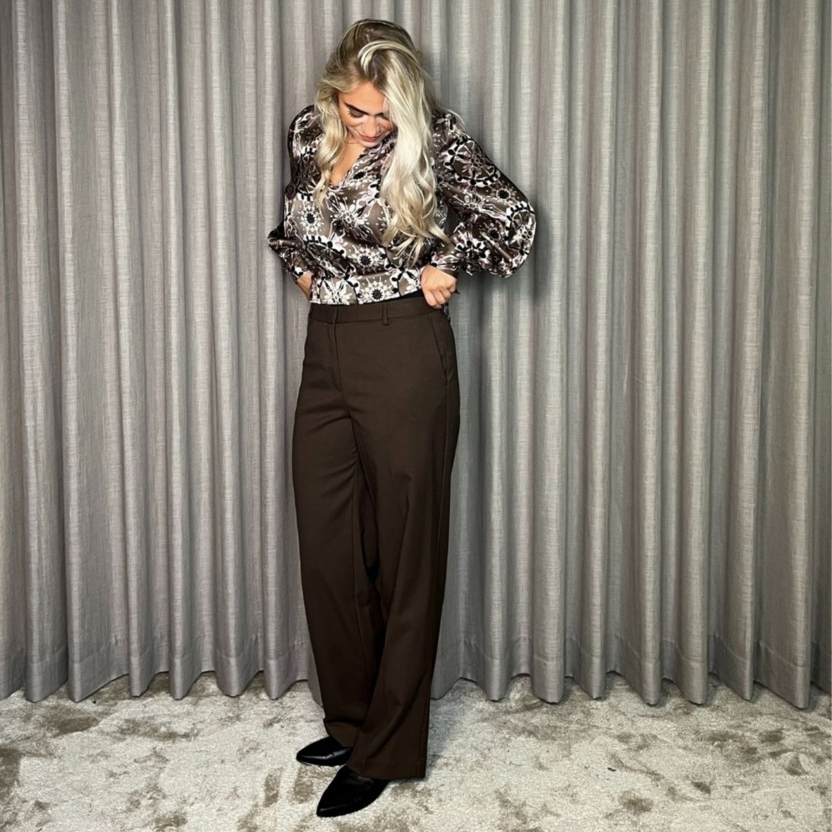 Disse fine brune bukser er designet i en lækker, løstsiddende pasform, der giver et afslappet og moderne udtryk.